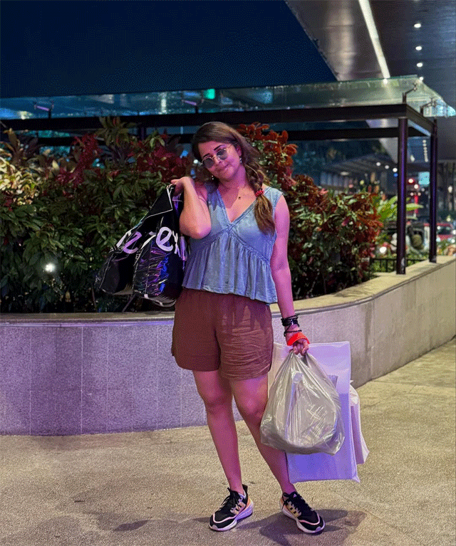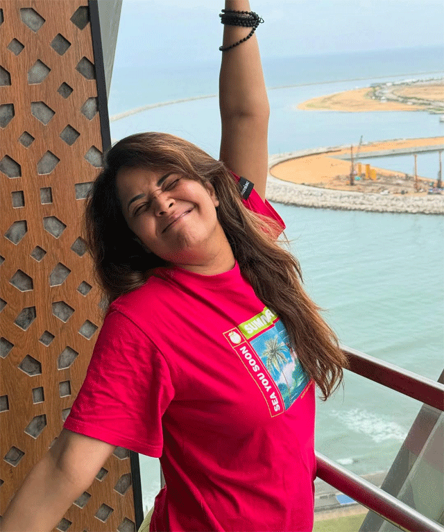 Actress Anasuya Bharadwaj, who became a household name through television, is now making a strong presence in films. Recently, she shared a happy moment from her trip to Sri Lanka on Instagram. In the photo, Anasuya is seen smiling brightly in a pink t-shirt that reads “See You Soon,” enjoying the beautiful view from her hotel. She wrote that Day 5 of her trip was all about self-care and her favorite activity shopping!