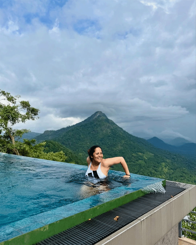 Anasuya has taken some time to share the pictures on Instagram. "After all that huge #SigiriyaRock Hike and a long drive to #Trincomalee .. #Day3 was just a rejuvenating #PoolDay at our stay 🏊‍♀️🌊" the actress wrote as a caption.