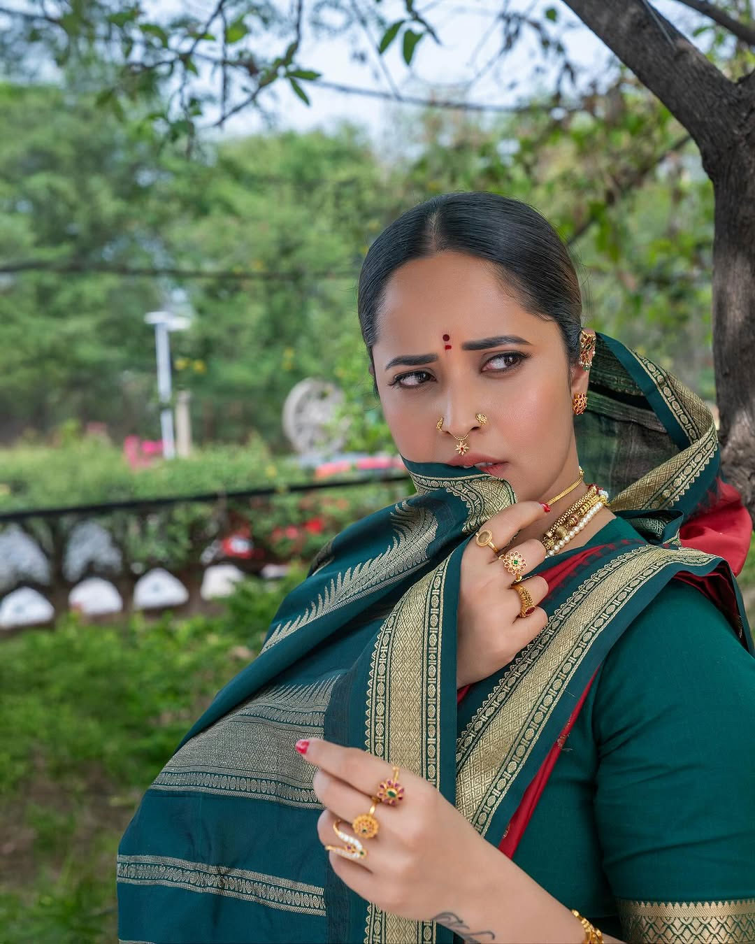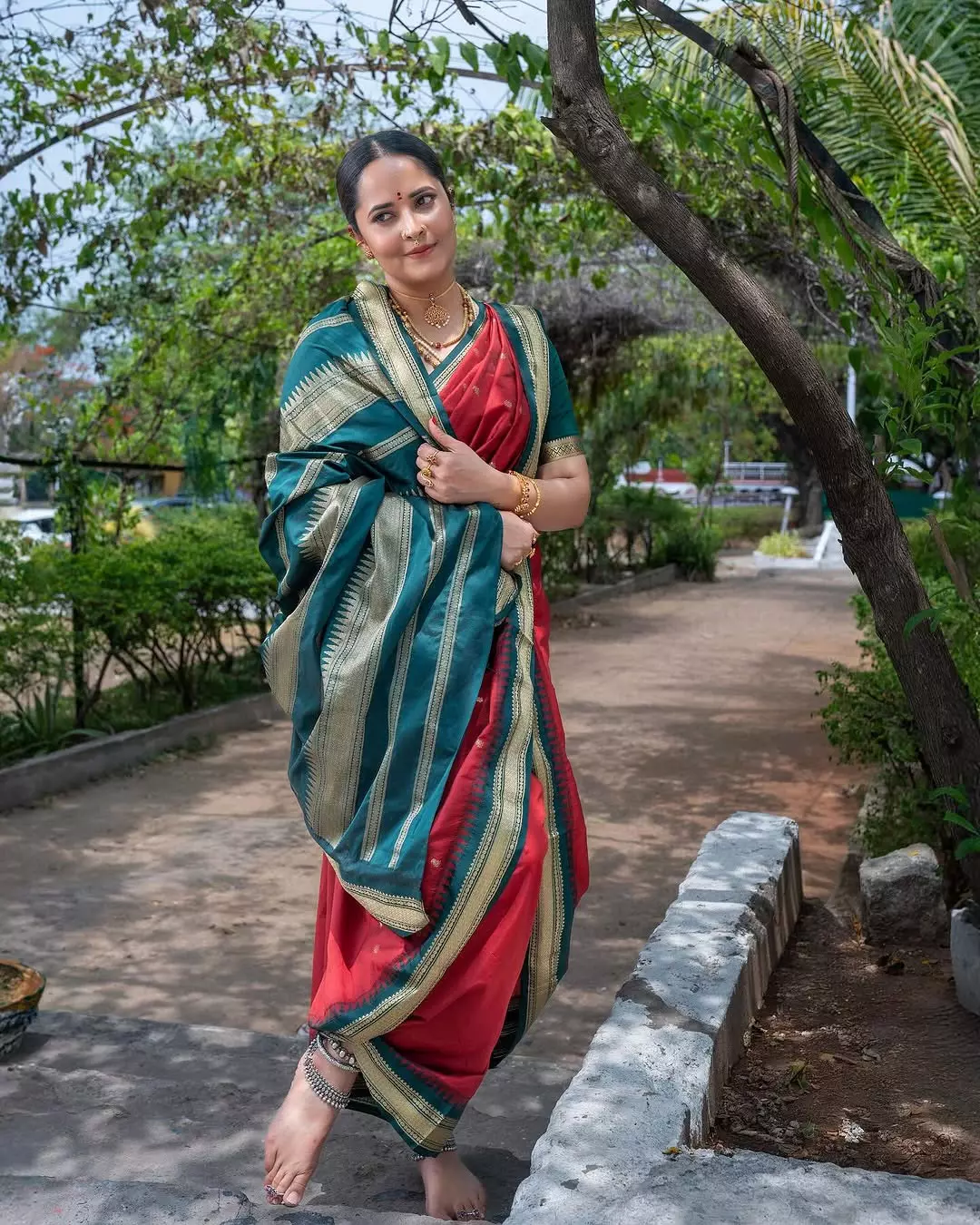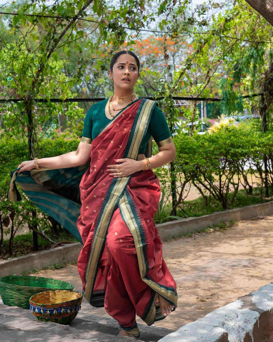 Anasuya in 9-Yard Saree Look for Village Theme Episode