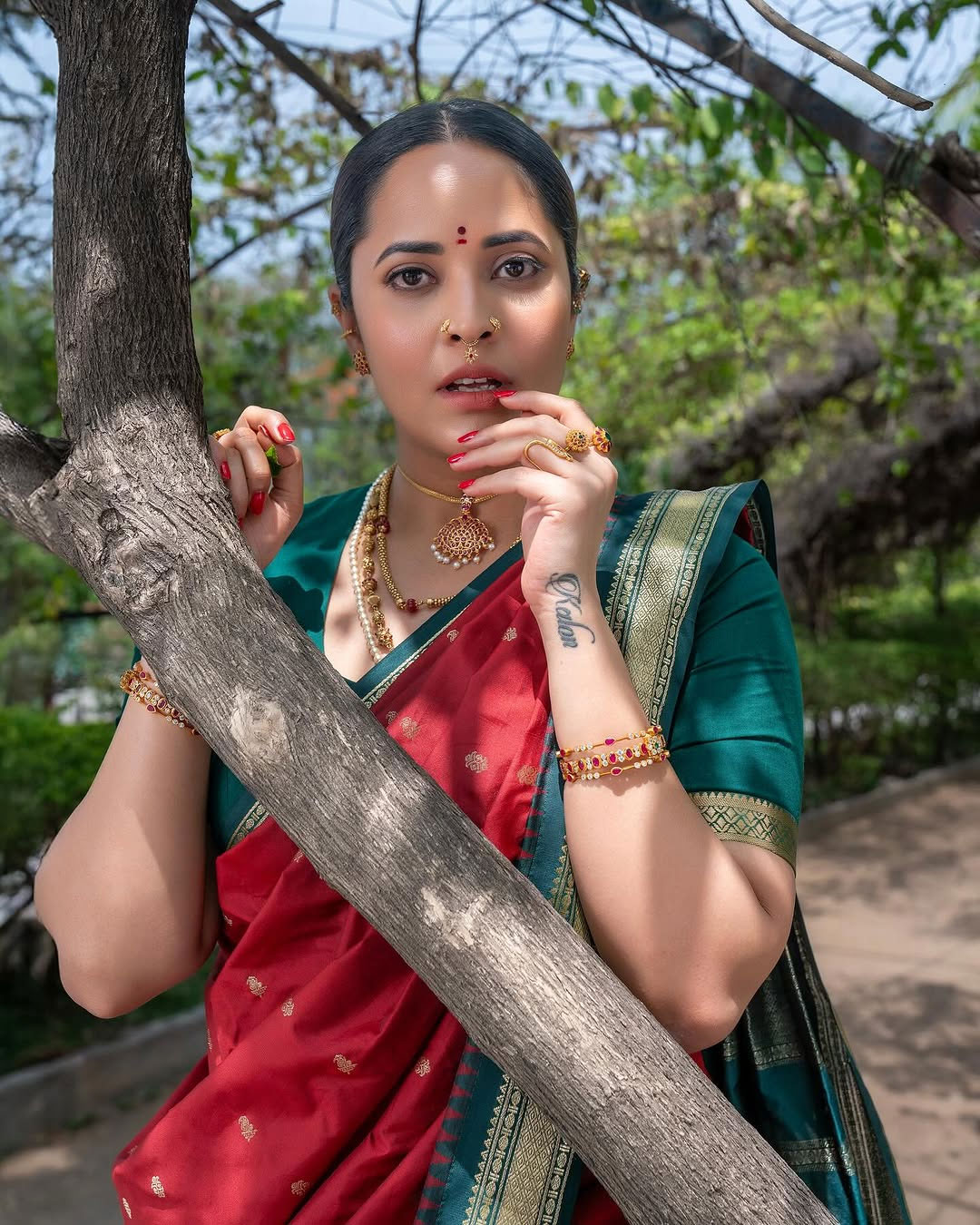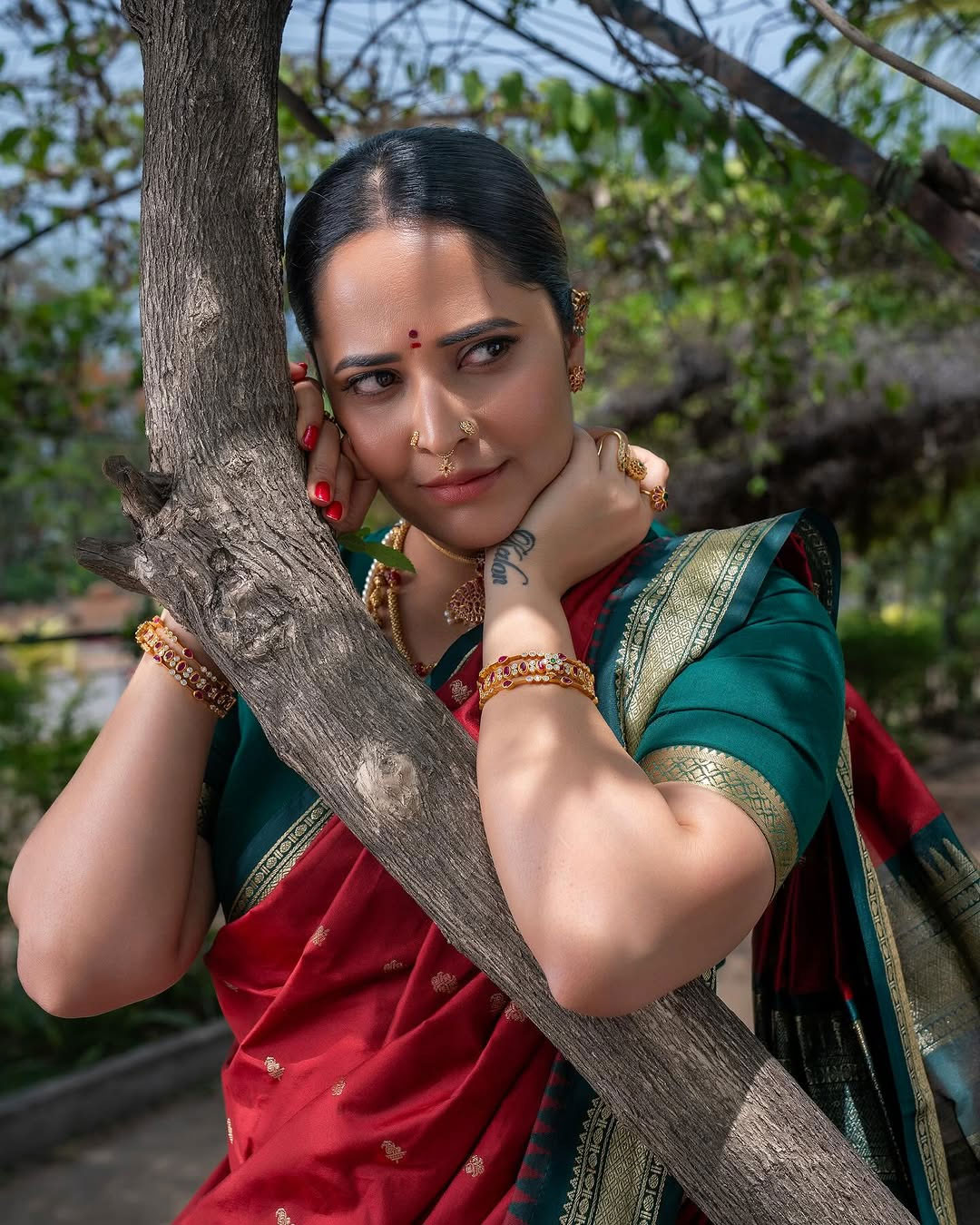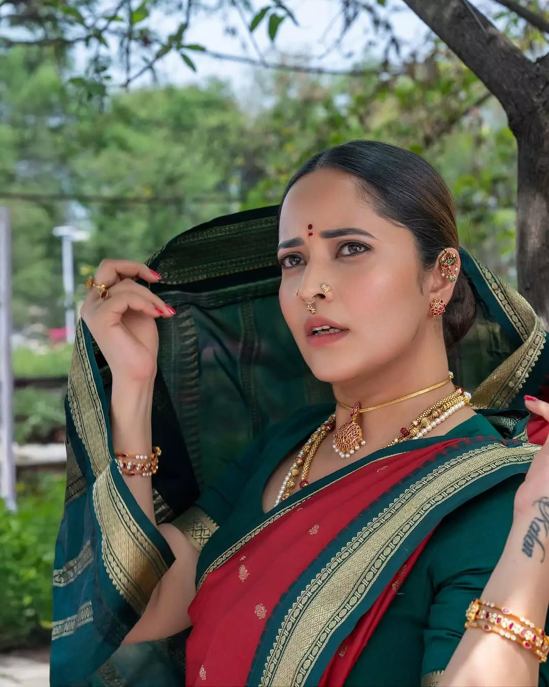 Anasuya in 9-Yard Saree Look for Village Theme Episode