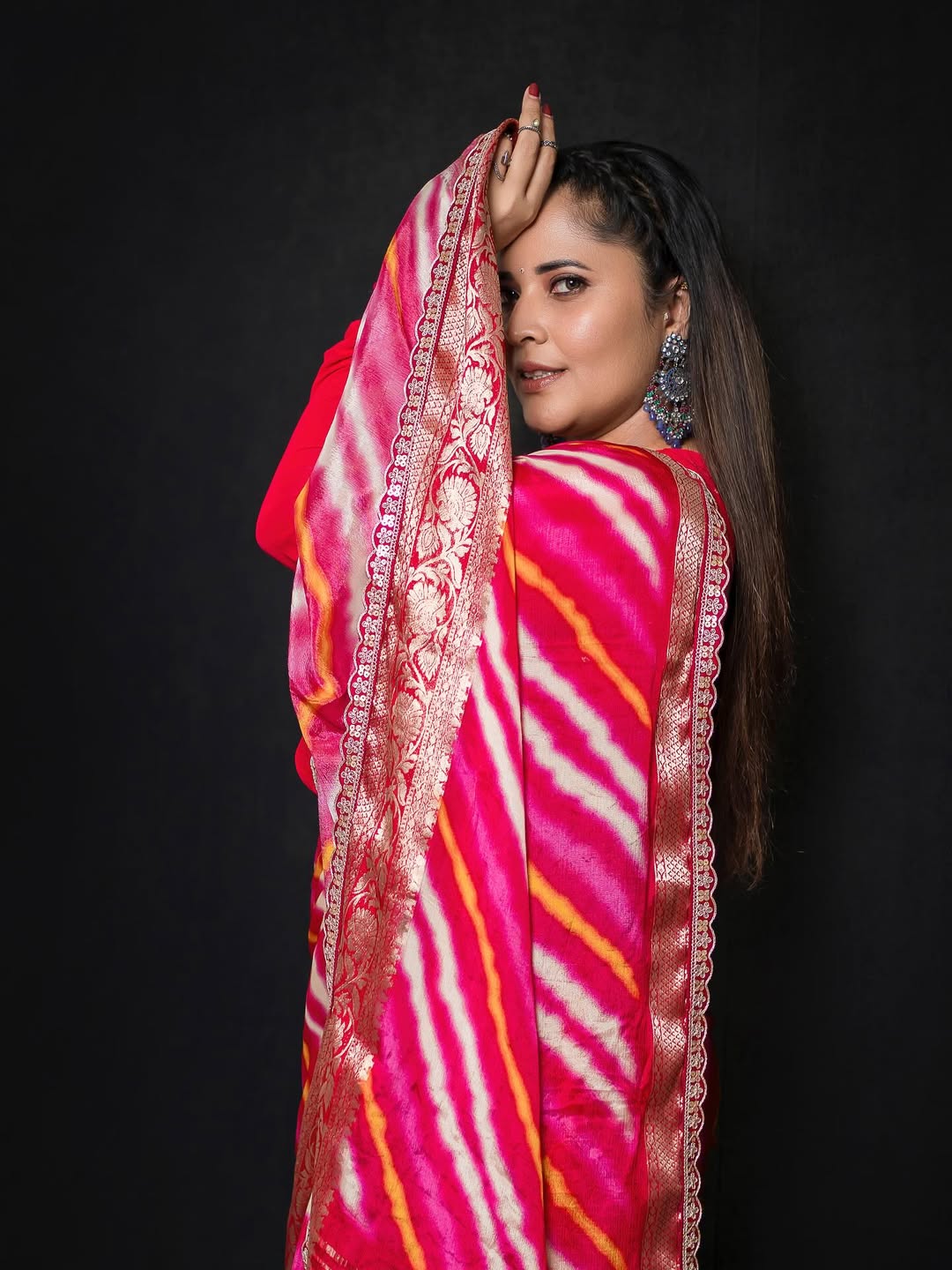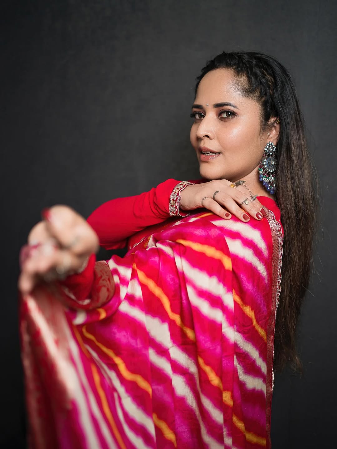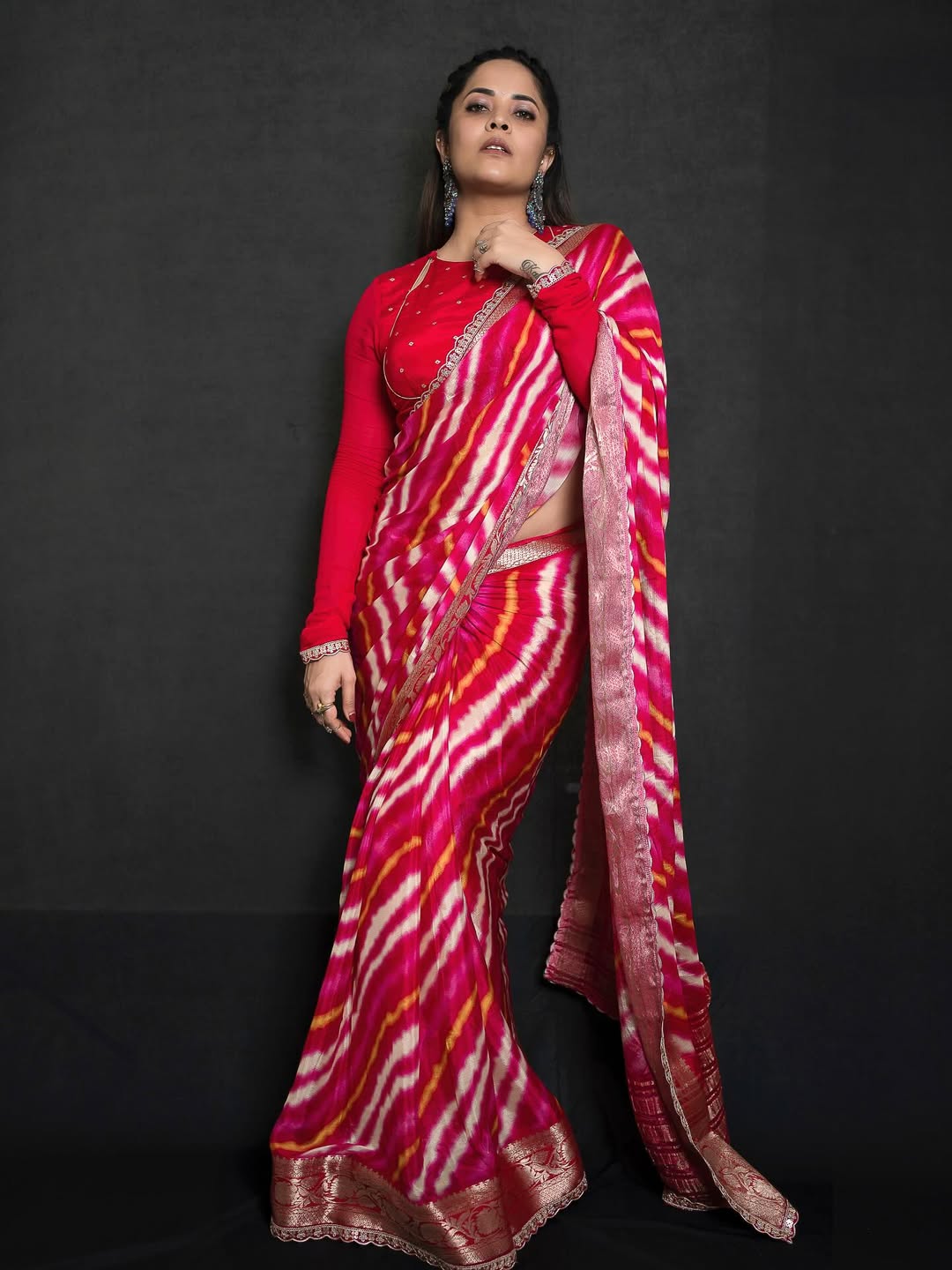 Anasuya Bharadwaj shared a picture of herself on Instagram by radiating confidence in a bright pink saree.