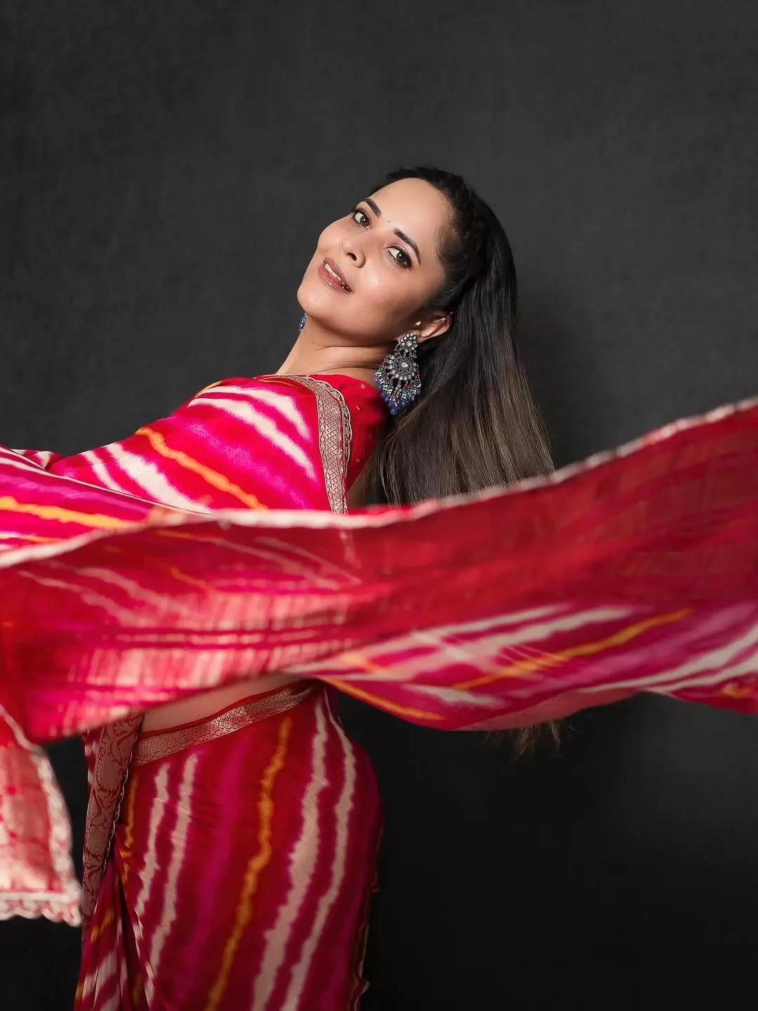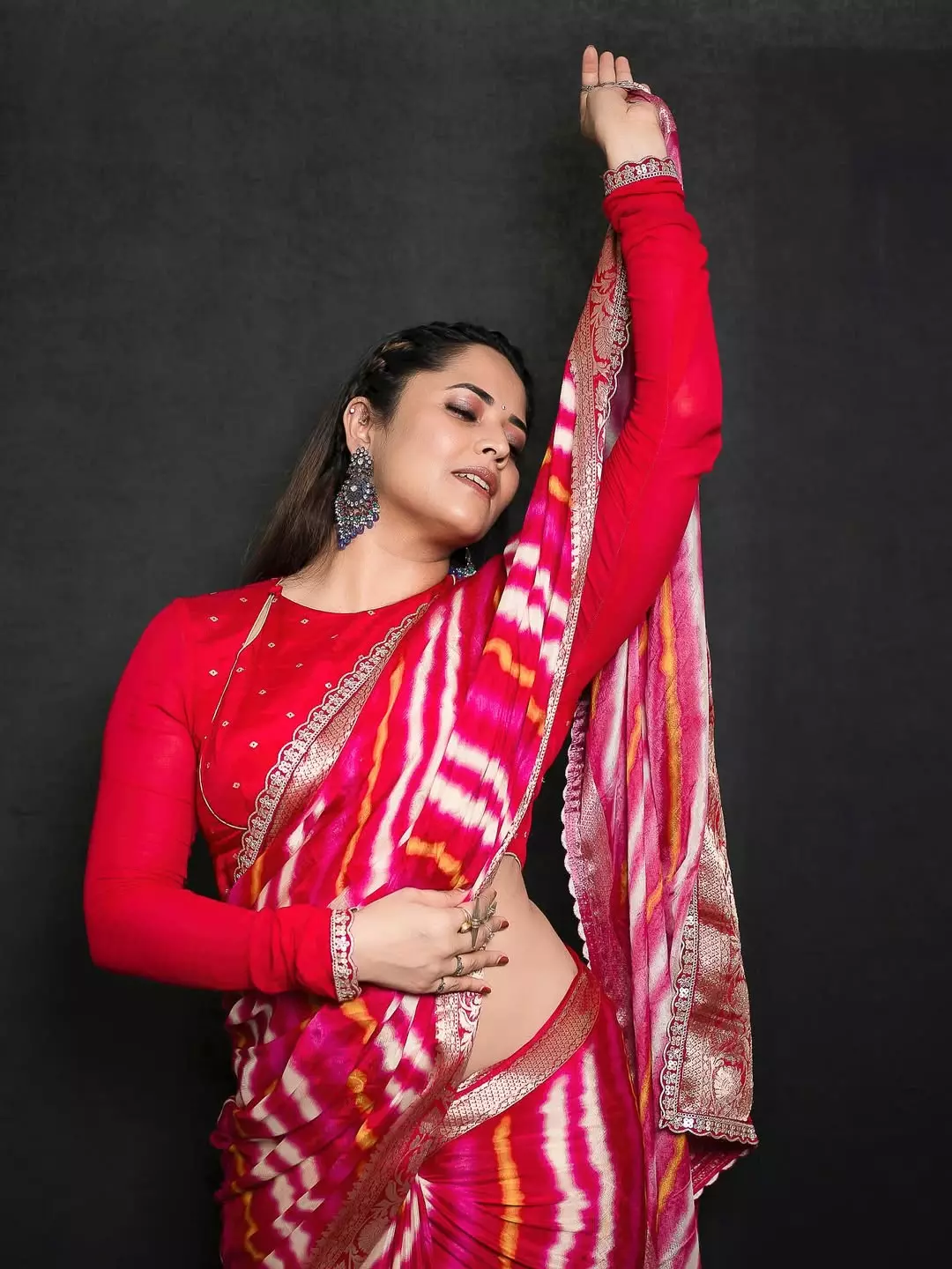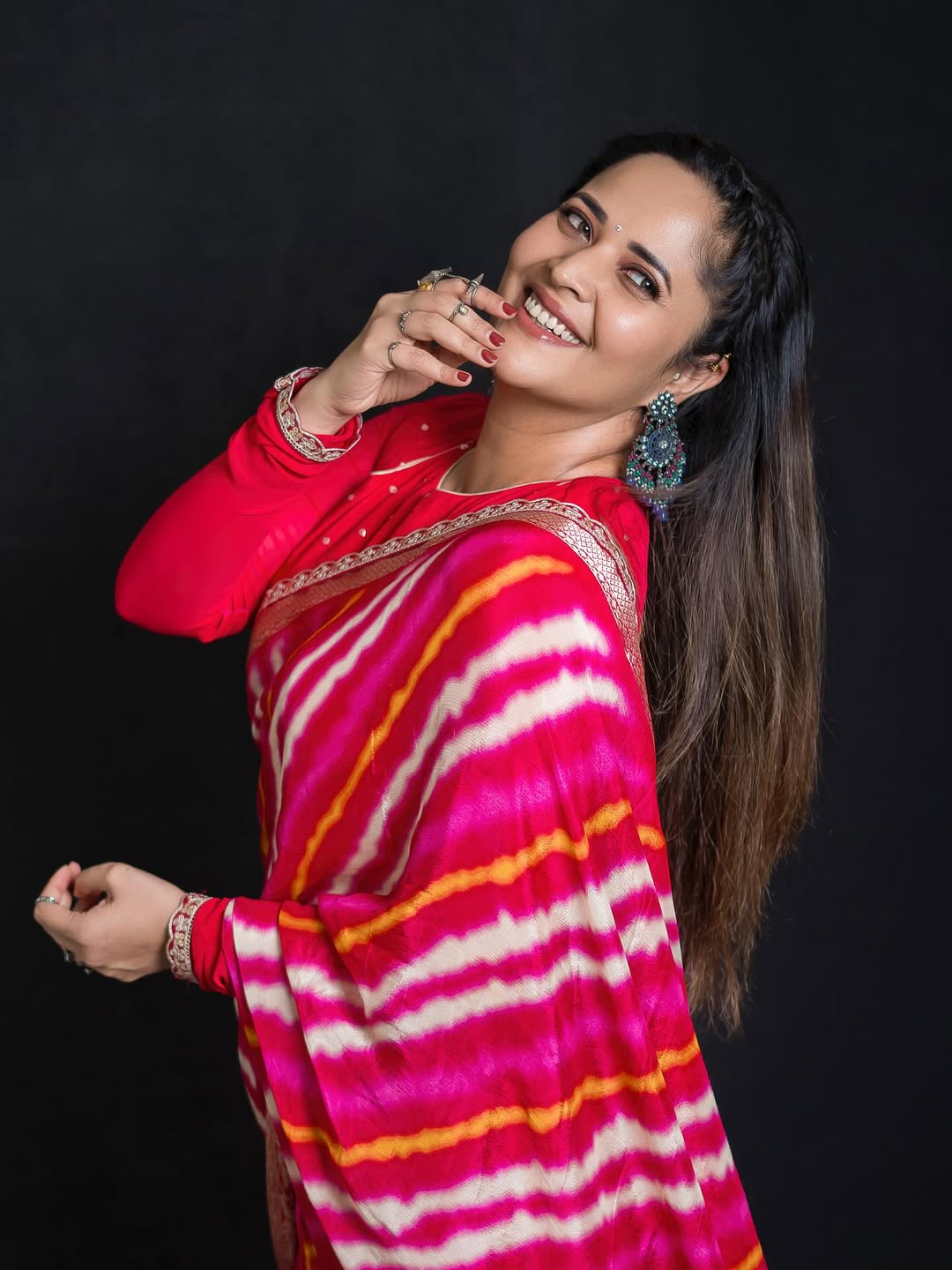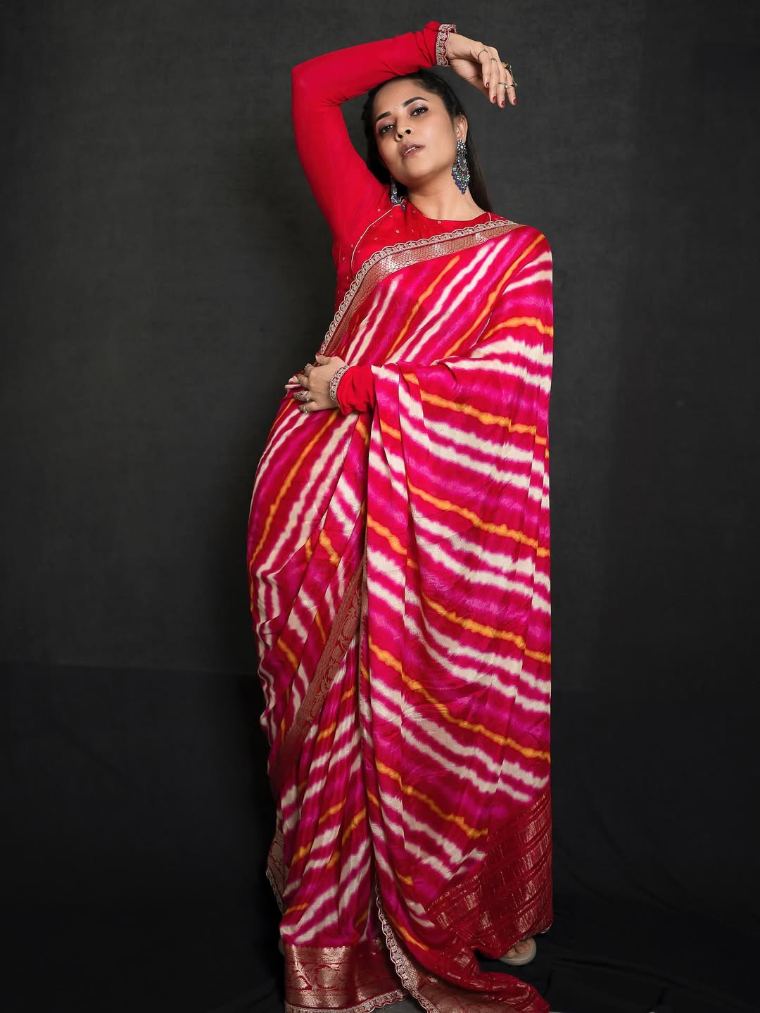 Anasuya Bharadwaj shared a picture of herself on Instagram by radiating confidence in a bright pink saree.