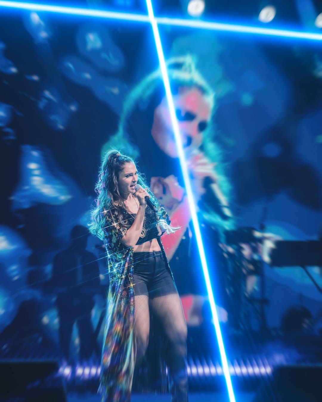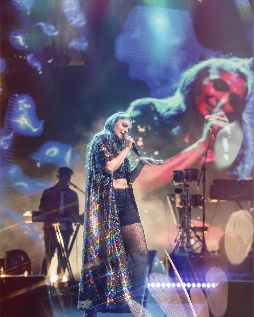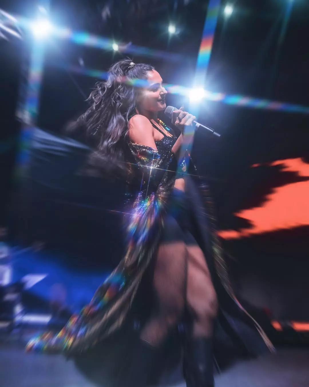 Andrea Jeremiah Wows Fans with Vibrant Stage Look