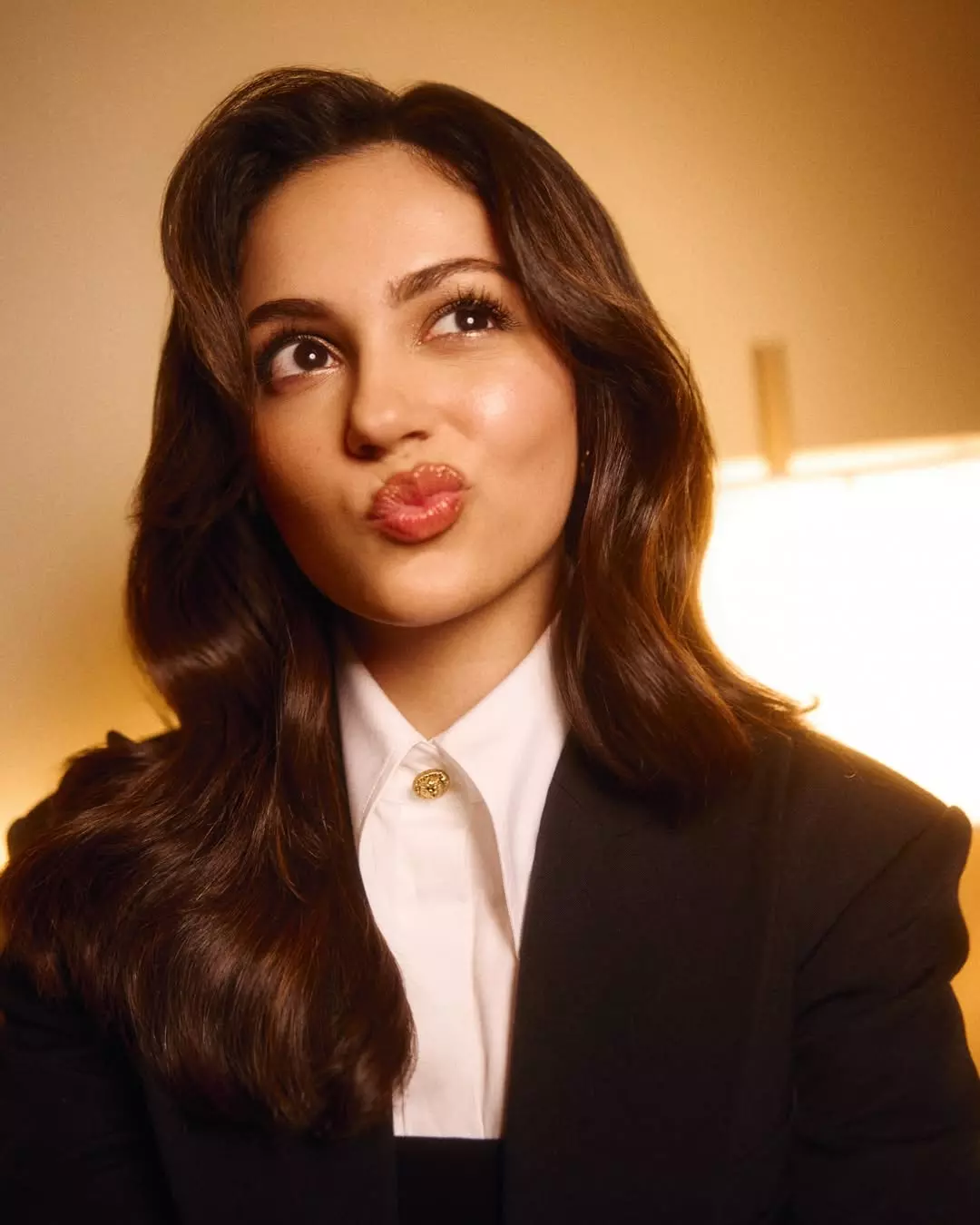 Dressed in a striking ensemble from Balmain paired with elegant heels by Jimmy Choo, Aneet embodied modern sophistication. The structured silhouette highlighted her confident presence, while her effortless grace added warmth to the high-fashion look. Styled meticulously by Chandini Wahi and Elsie Chetry, the outfit struck the perfect balance between bold and refined.