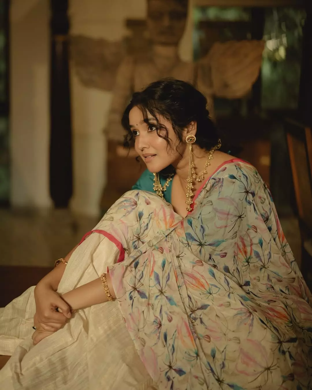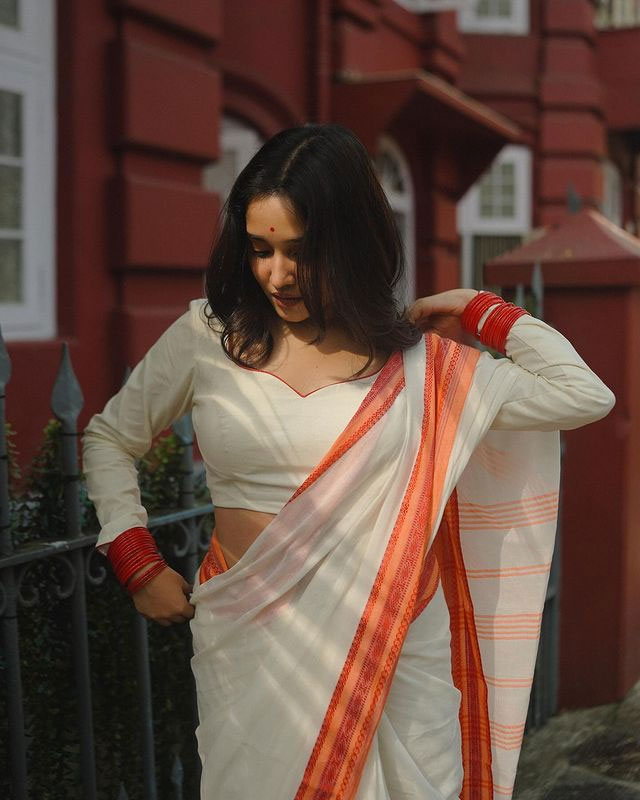 Draped in a gorgeous saree, she embraces the spirit of the harvest festival with effortless poise, making her ensemble a perfect choice for Pongal celebrations. Her styling complements the saree seamlessly, enhancing the overall aesthetic while allowing the timeless beauty of the attire to take center stage.