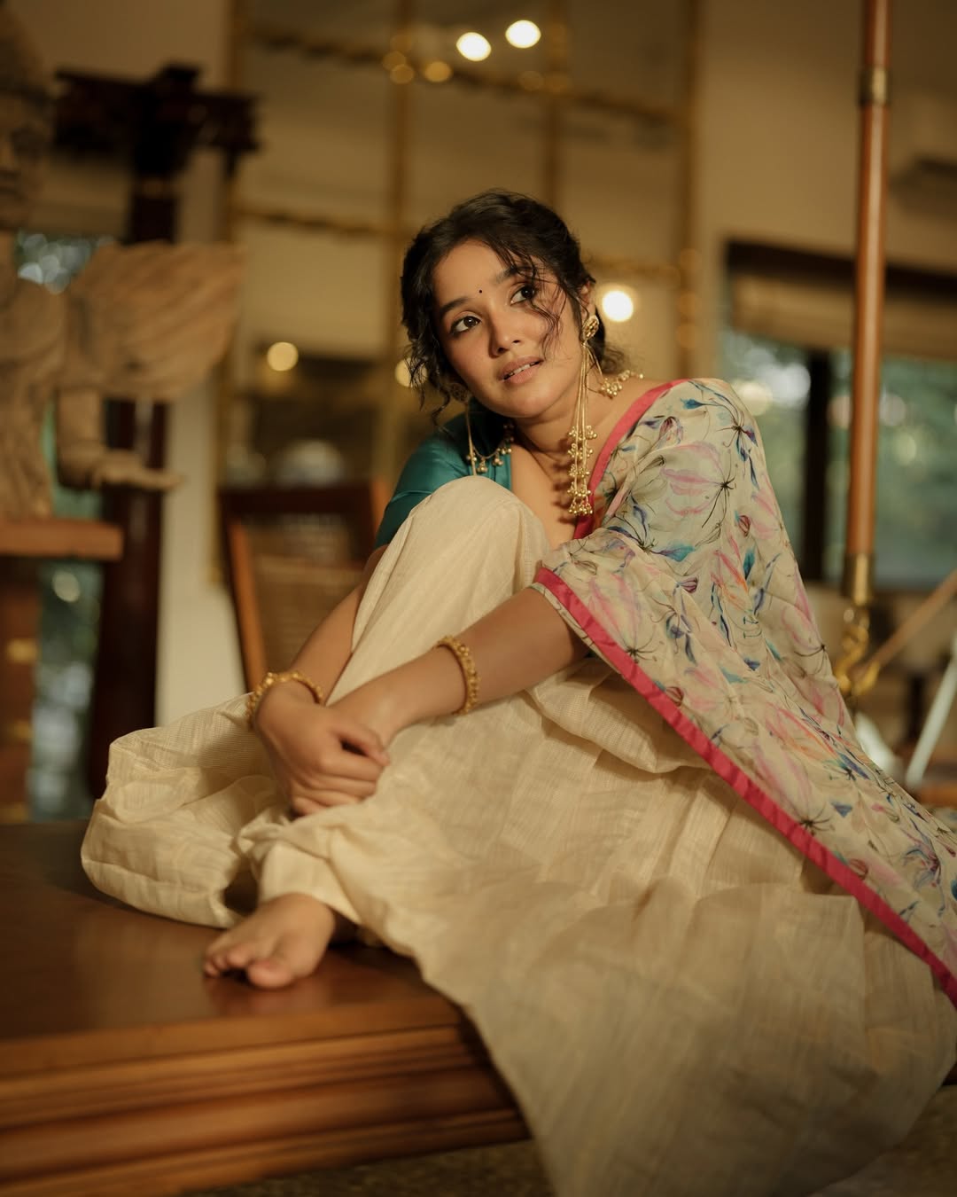 Wishing everyone “happy happy Pongal 🌸,” Anikha’s festive post exudes warmth, positivity, and joy. Styled by @styledby_mk_, with accessories from @adorebypriyanka and @temple.town, the look showcases refined craftsmanship and thoughtful detailing. Makeup and hair by @merin__georg and photography by @ashif_marakkar further elevate the visual appeal of the shoot.