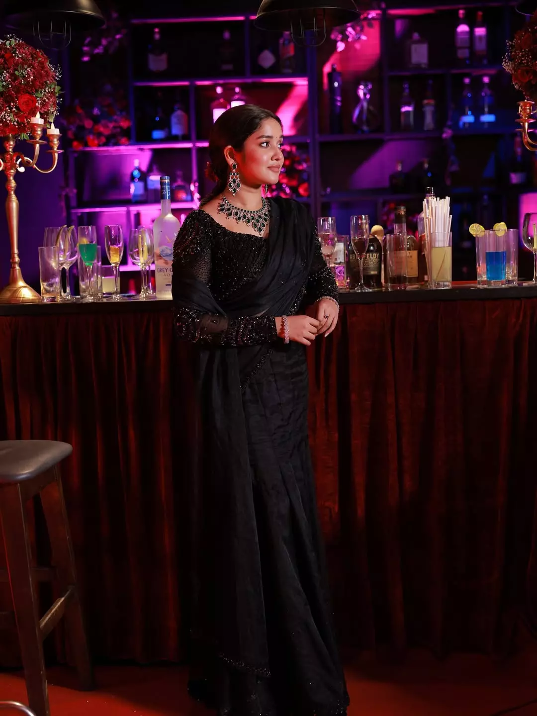 Anikha Surendran shared a new post on Instagram. She wore a traditional saree and sat near a pookalam.