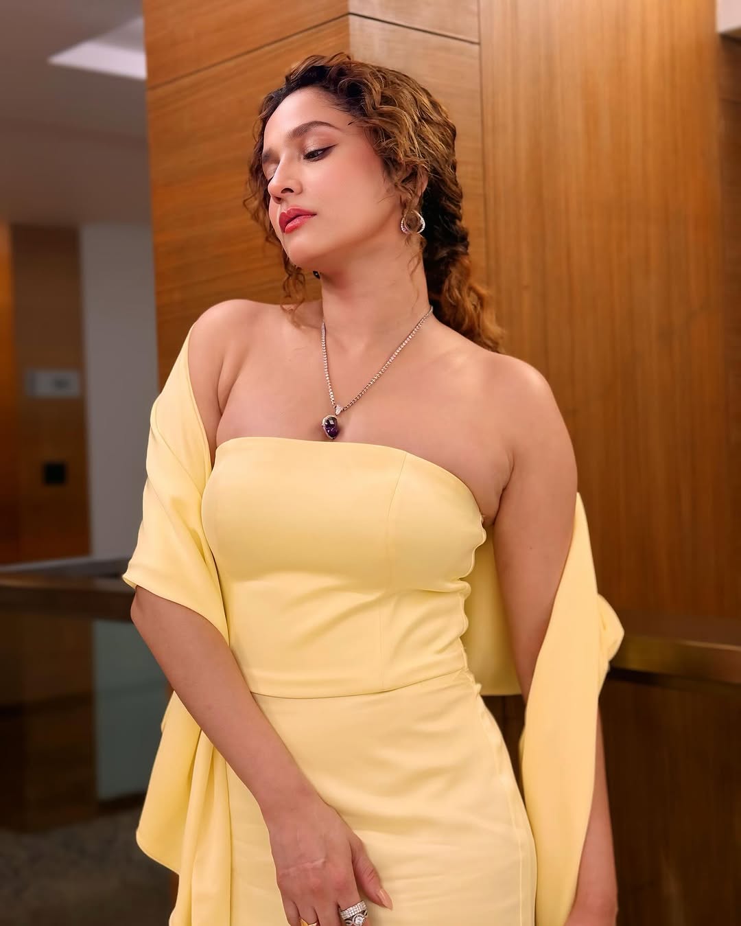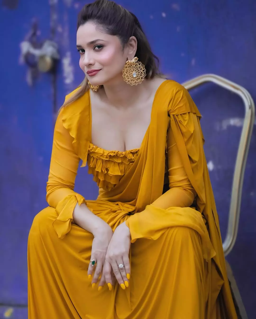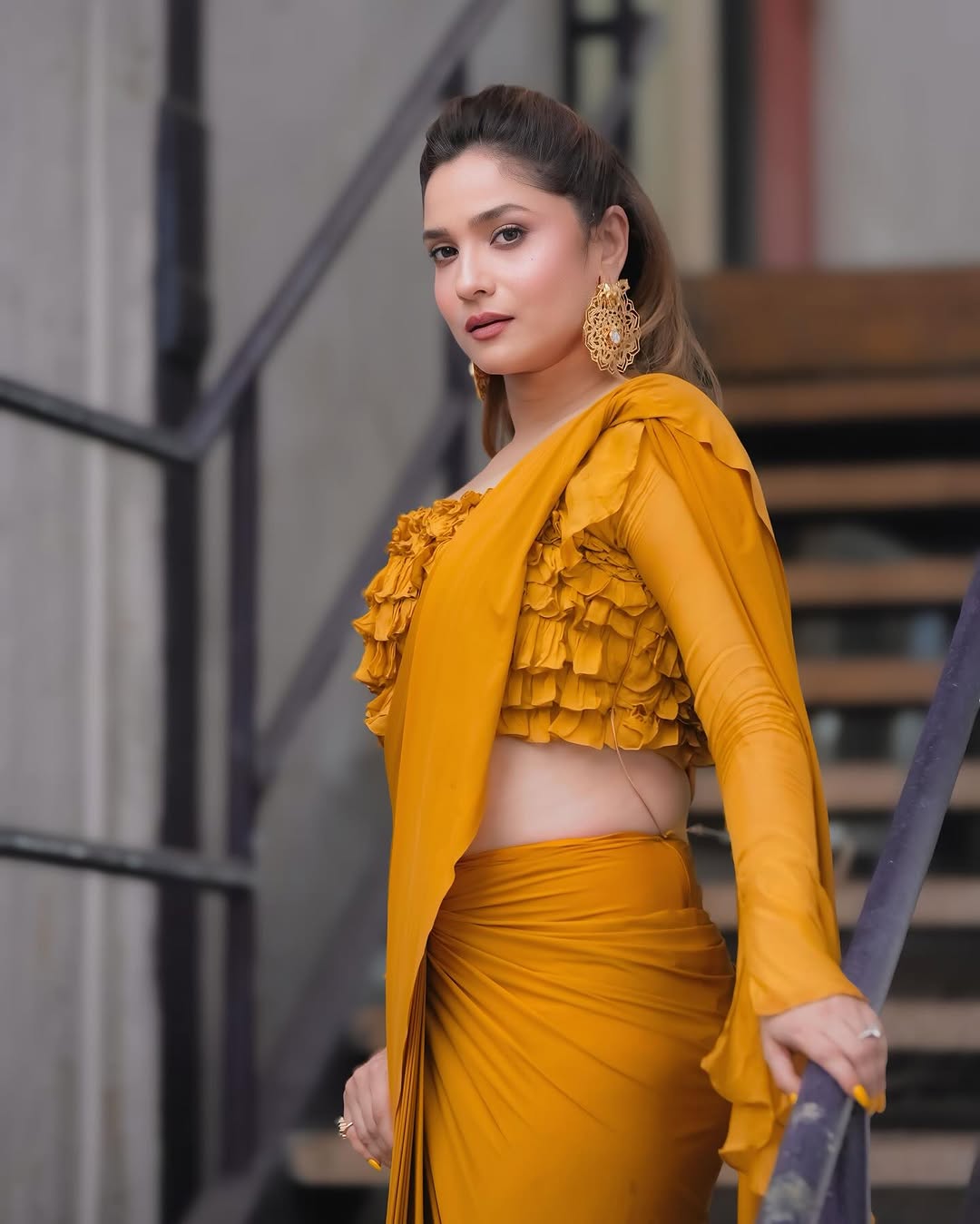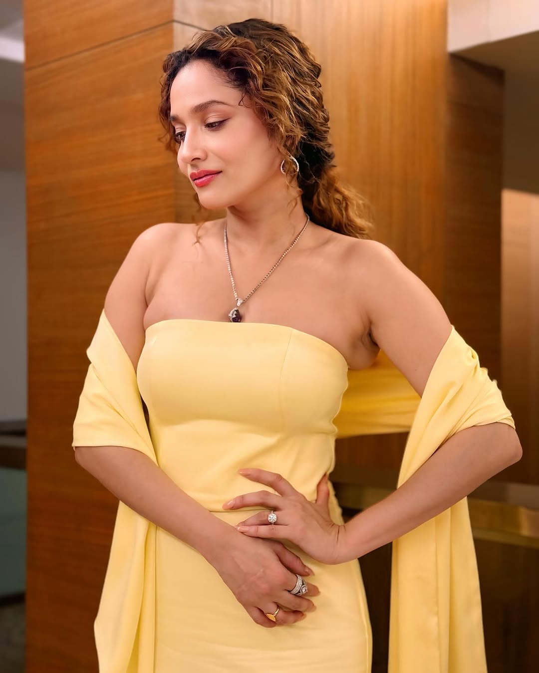 Ankita Lokhande is turning heads with her latest look. She wears a yellow dress that blends grace with confidence. Her fashion choices always stand out and this one is no exception.