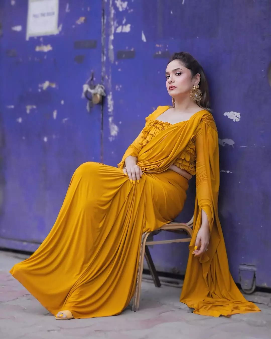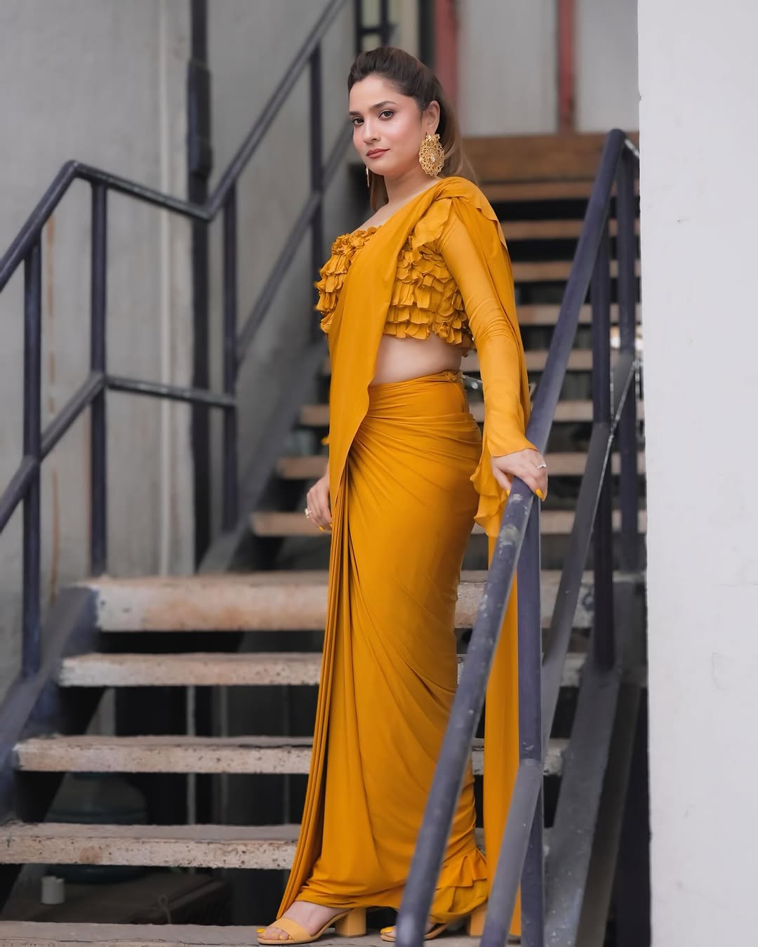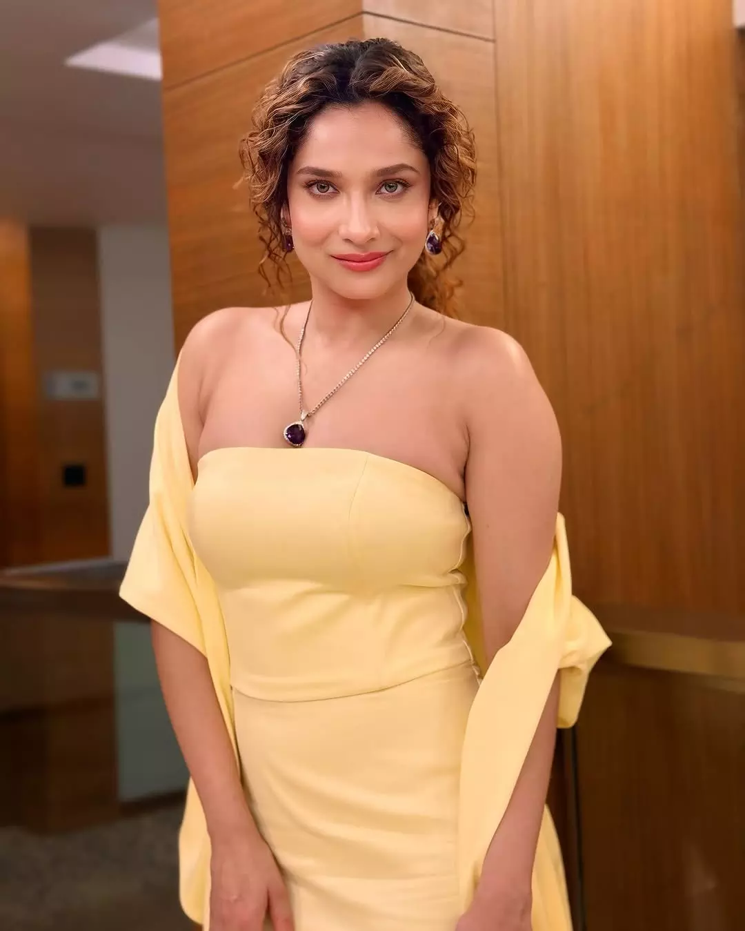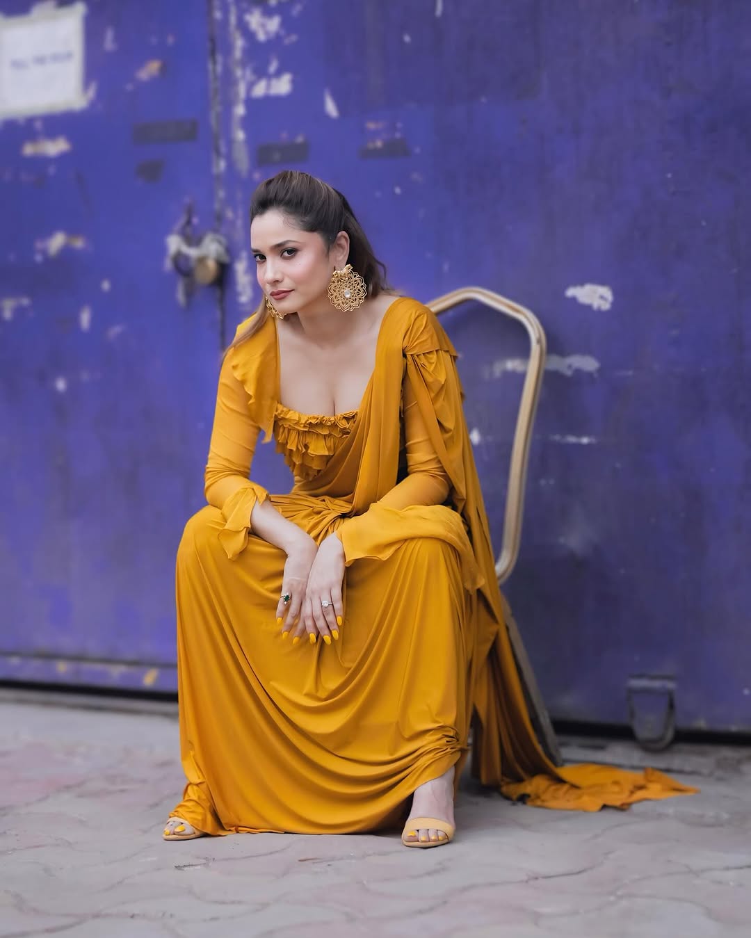 Ankita Lokhande is turning heads with her latest look. She wears a yellow dress that blends grace with confidence. Her fashion choices always stand out and this one is no exception.