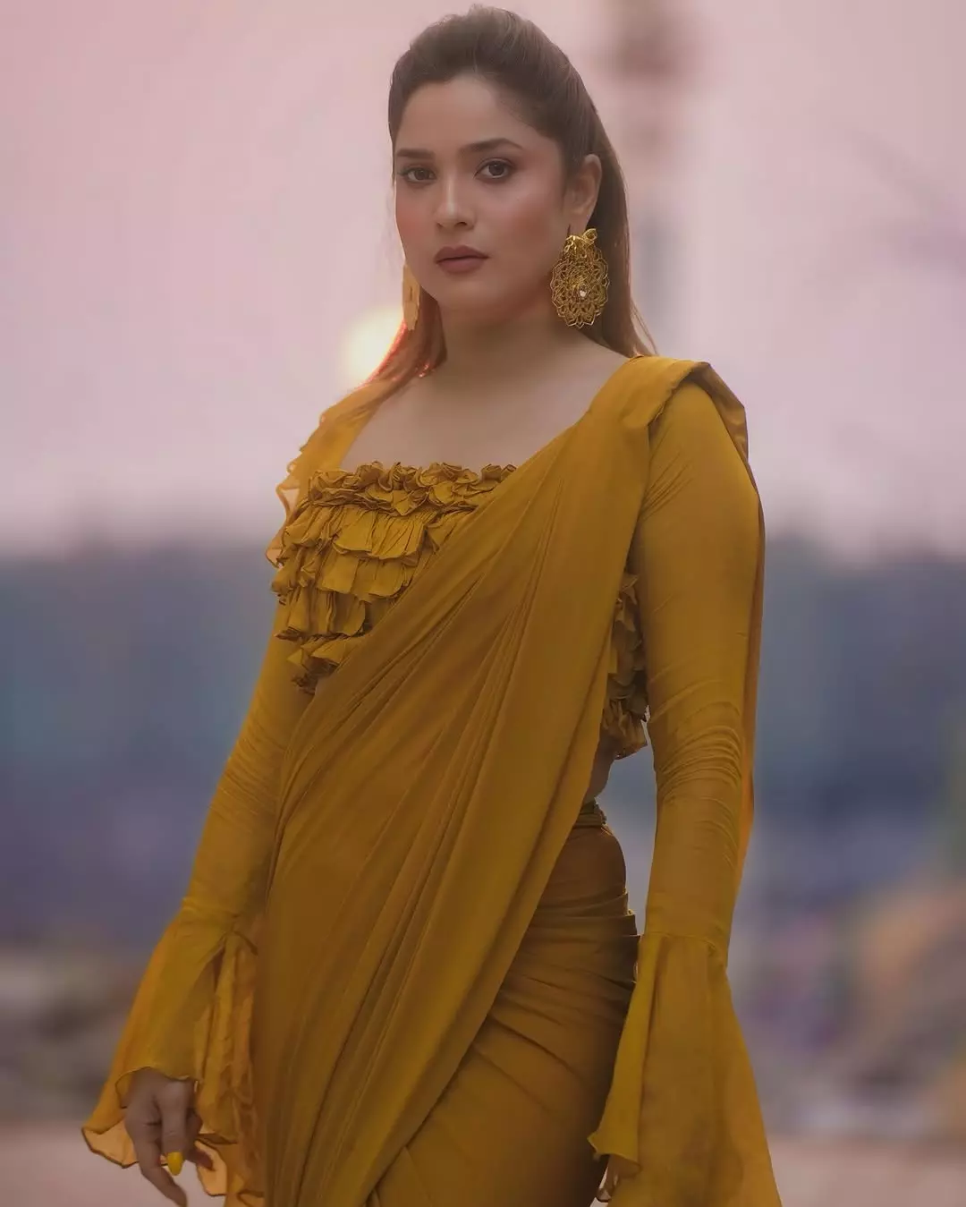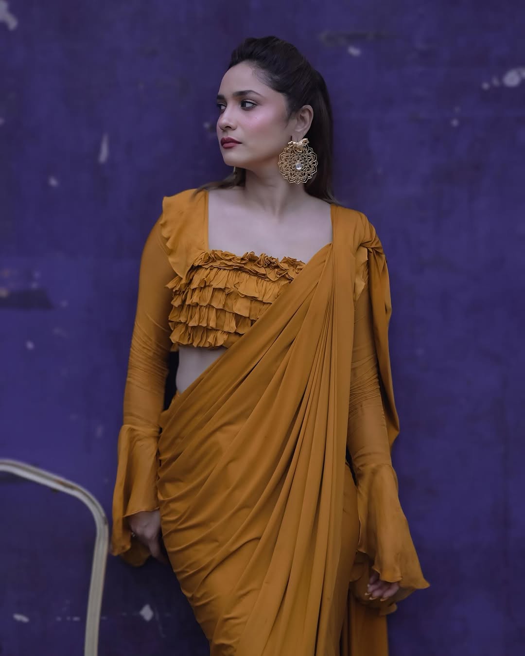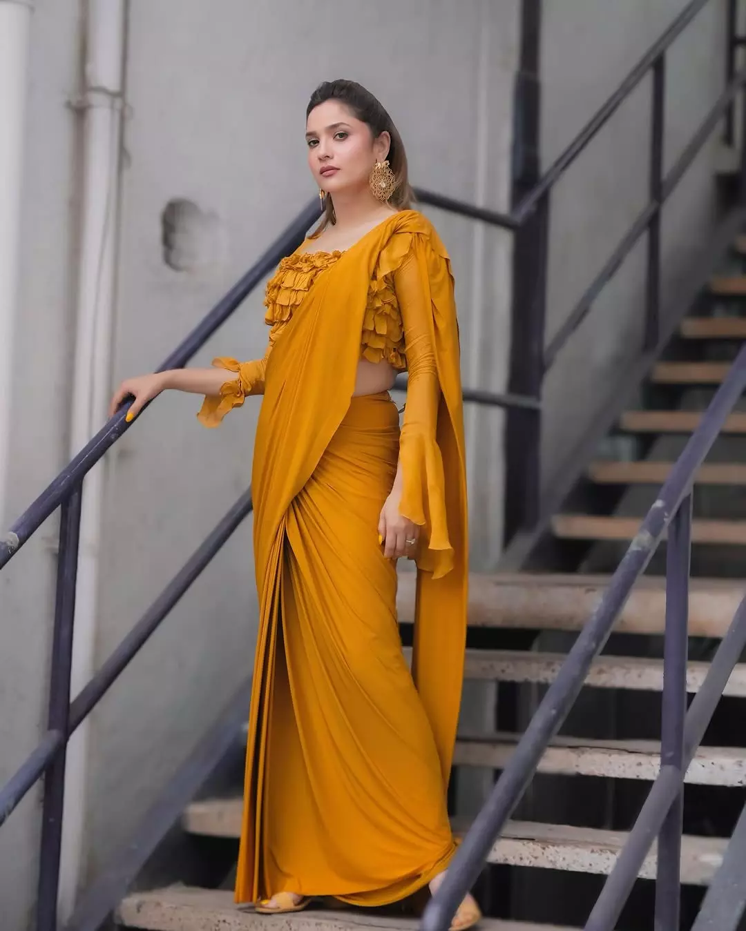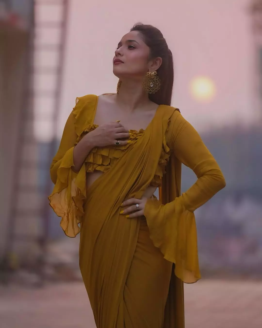 Ankita Lokhande is turning heads with her latest look. She wears a yellow dress that blends grace with confidence. Her fashion choices always stand out and this one is no exception.