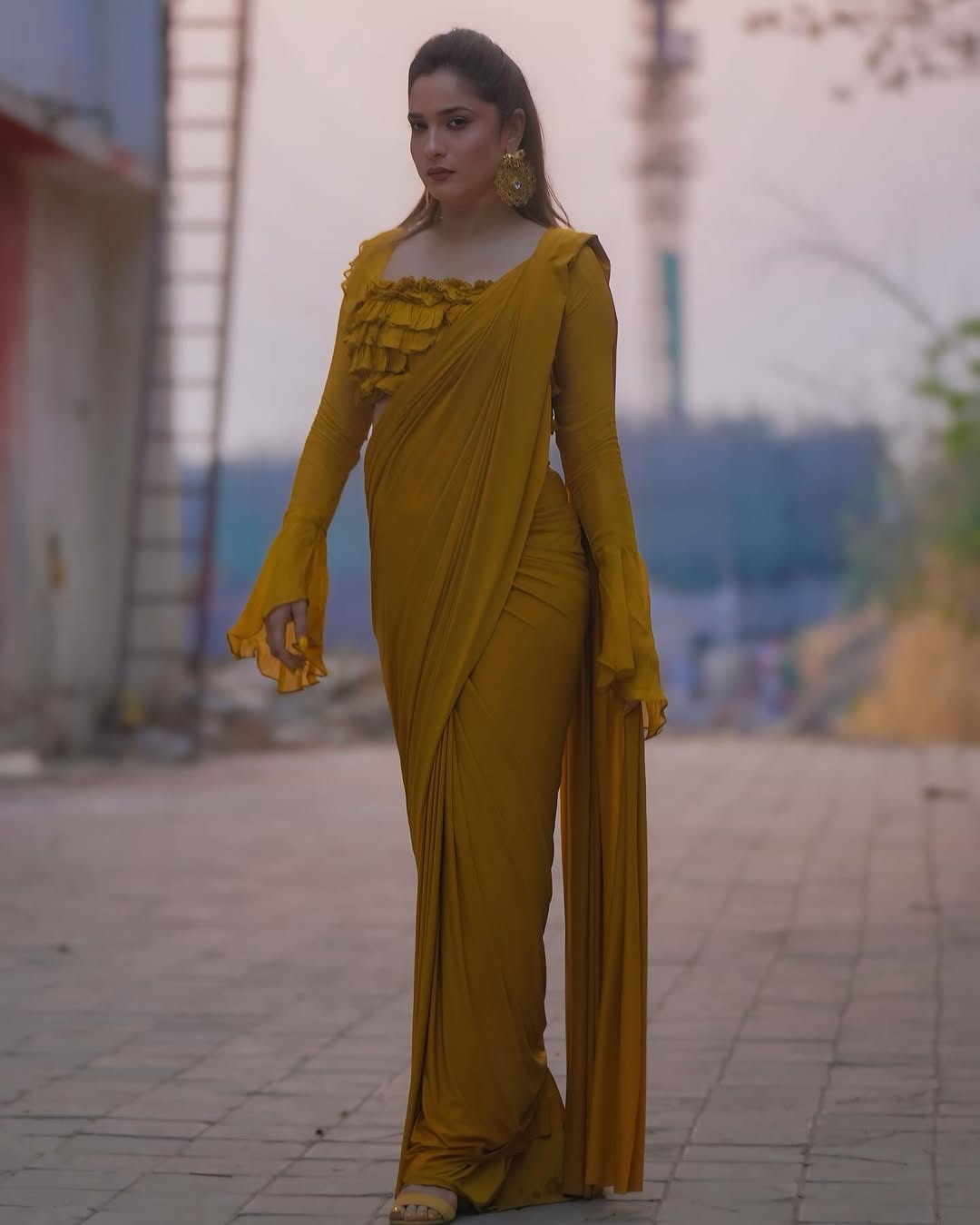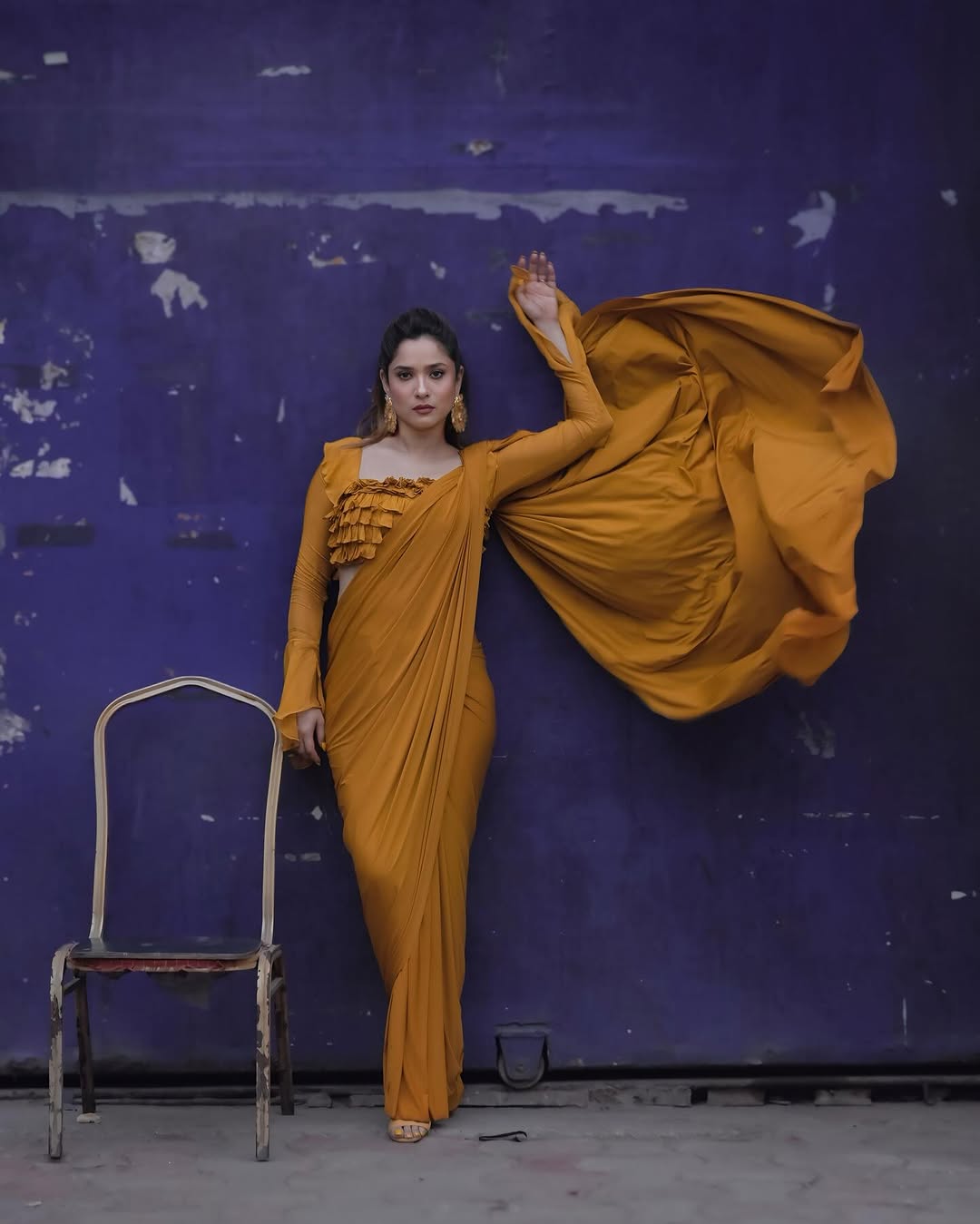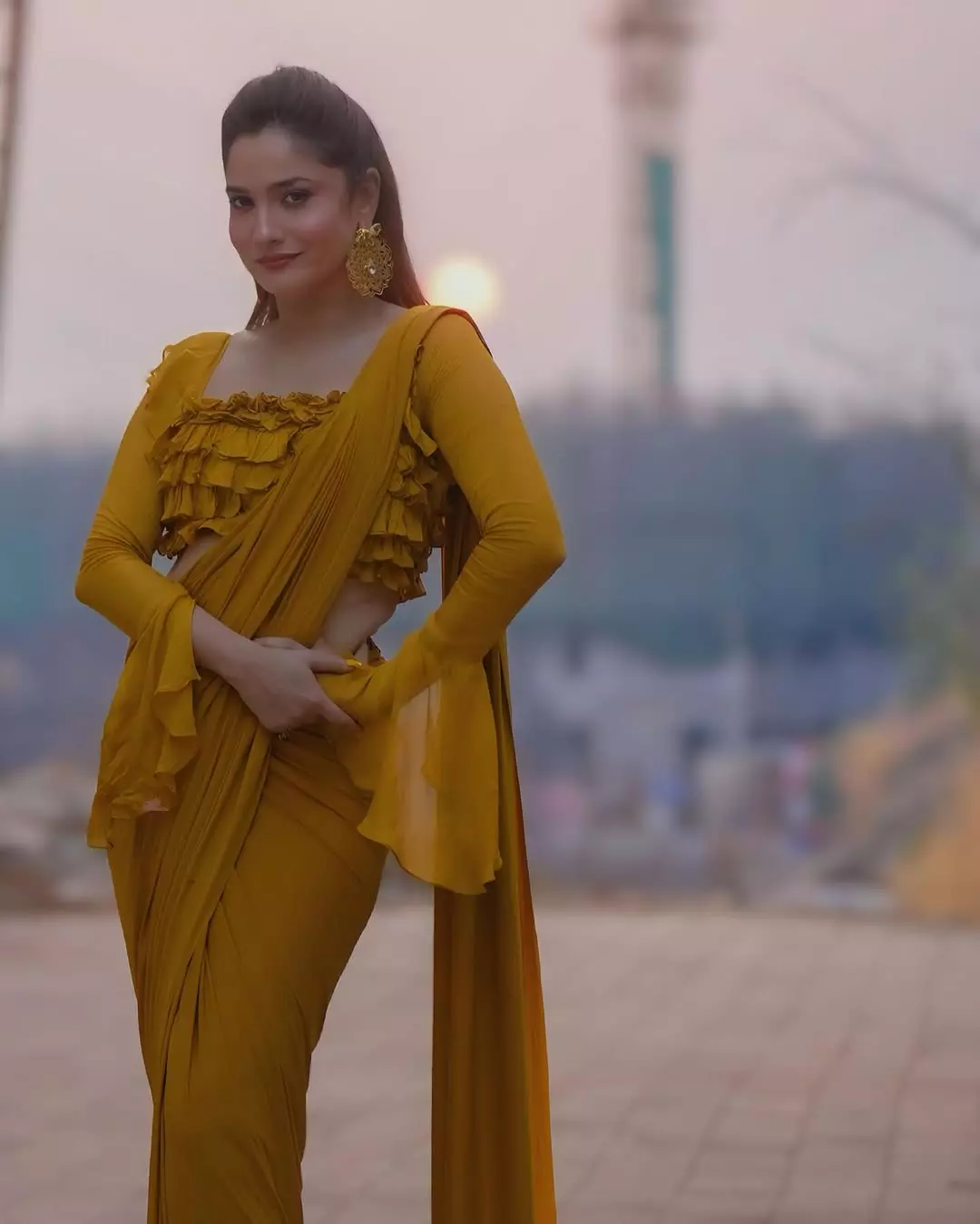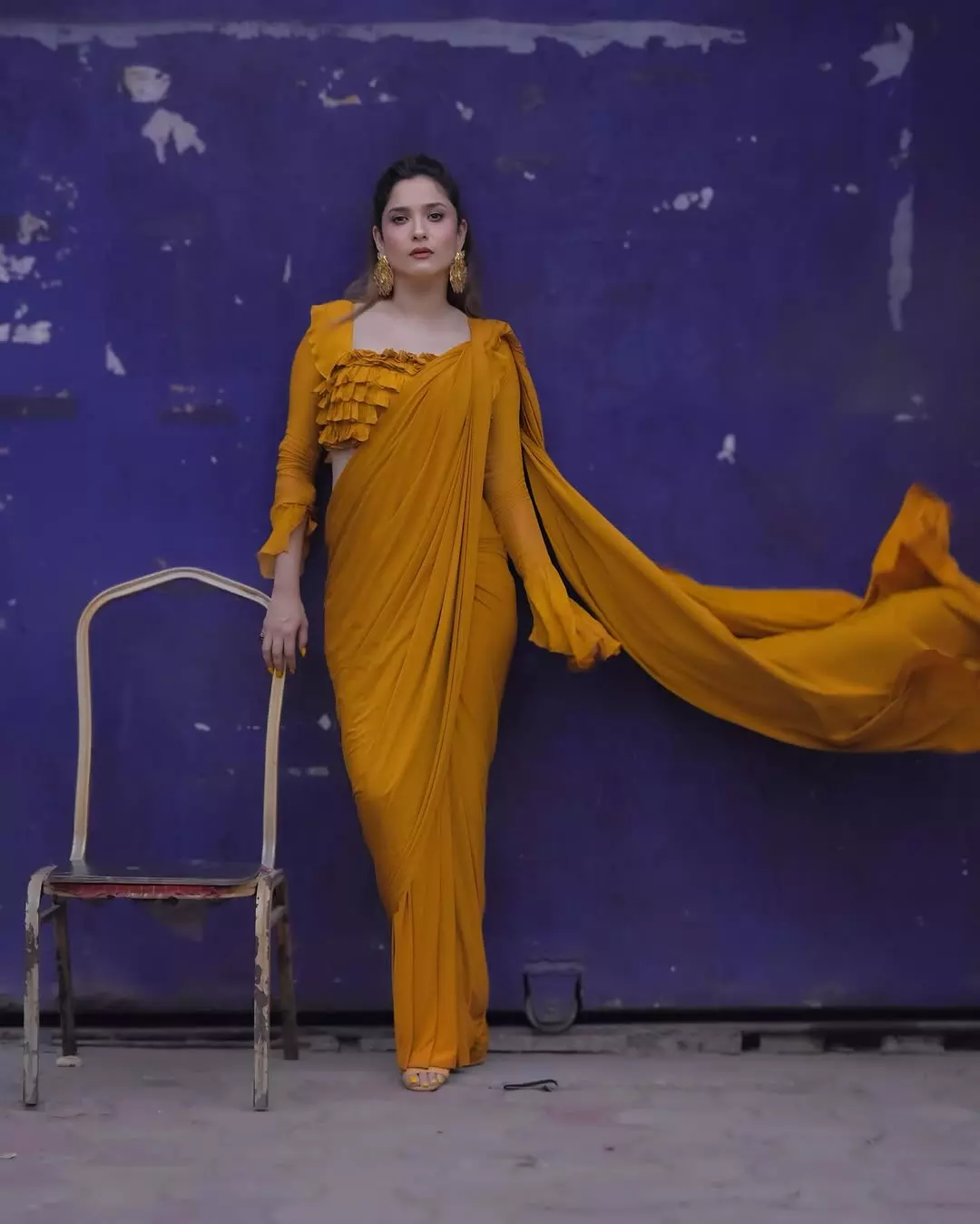 Ankita Lokhande is turning heads with her latest look. She wears a yellow dress that blends grace with confidence. Her fashion choices always stand out and this one is no exception.
