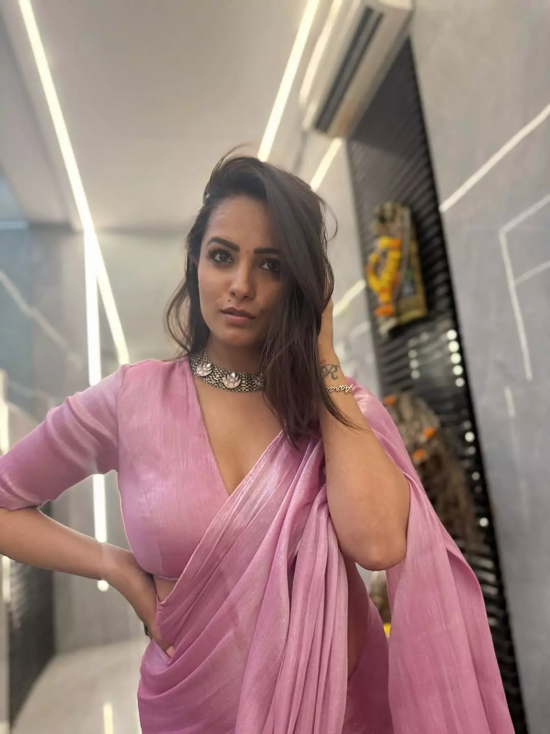 Anita Hassanandani looks radiant in this elegant pink saree look, exuding grace and confidence.