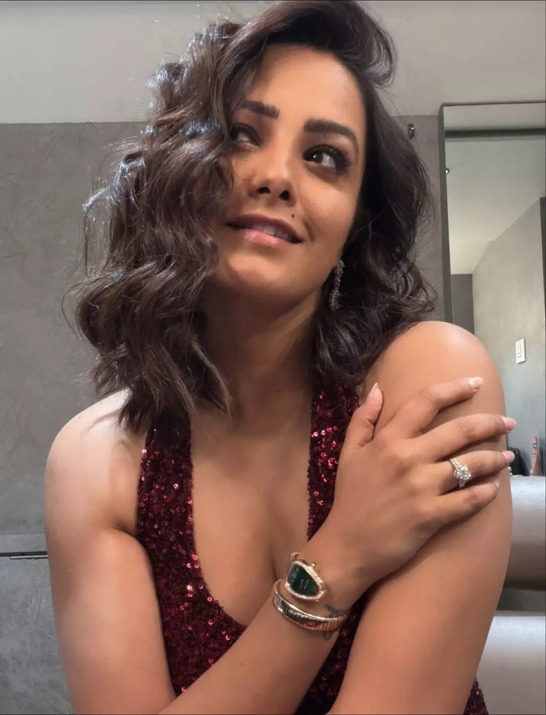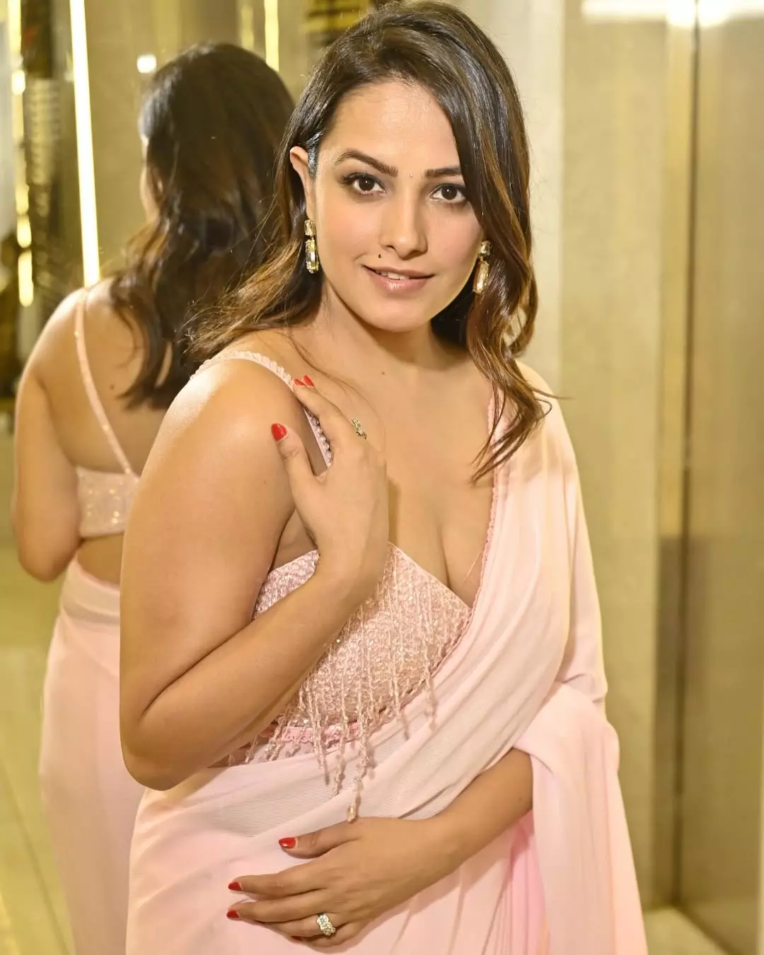 By: Tupaki Desk | 26 March 2026 4:03 PM ISTAnita Hassanandani looks radiant in this elegant pink saree look, exuding grace and confidence. Draped in a shimmering sequined blouse with delicate fringes and a soft pink drape, she gently touches her shoulder while flashing a warm smile. Her wavy hair, bold red nails, and statement earrings complete the sophisticated ensemble, highlighting her timeless beauty and poise.
