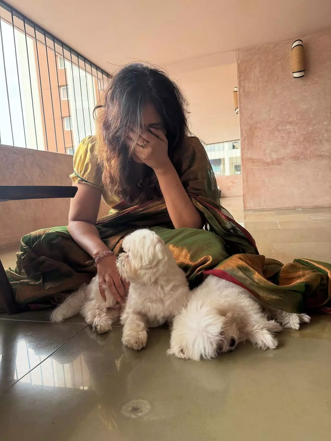 Draped gracefully in a classic saree, Anjali stands as a symbol of timeless elegance. But it’s the subtle, candid presence of “My Boys” — her beloved family and close ones — that adds depth to each frame.