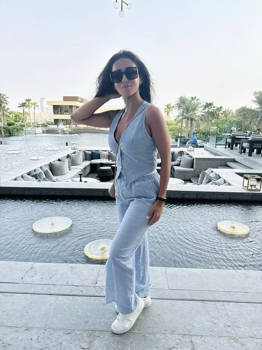Her hair and makeup, perfected by @makeuphairbyrahul, enhance her glowing complexion and frame her features with effortless finesse.