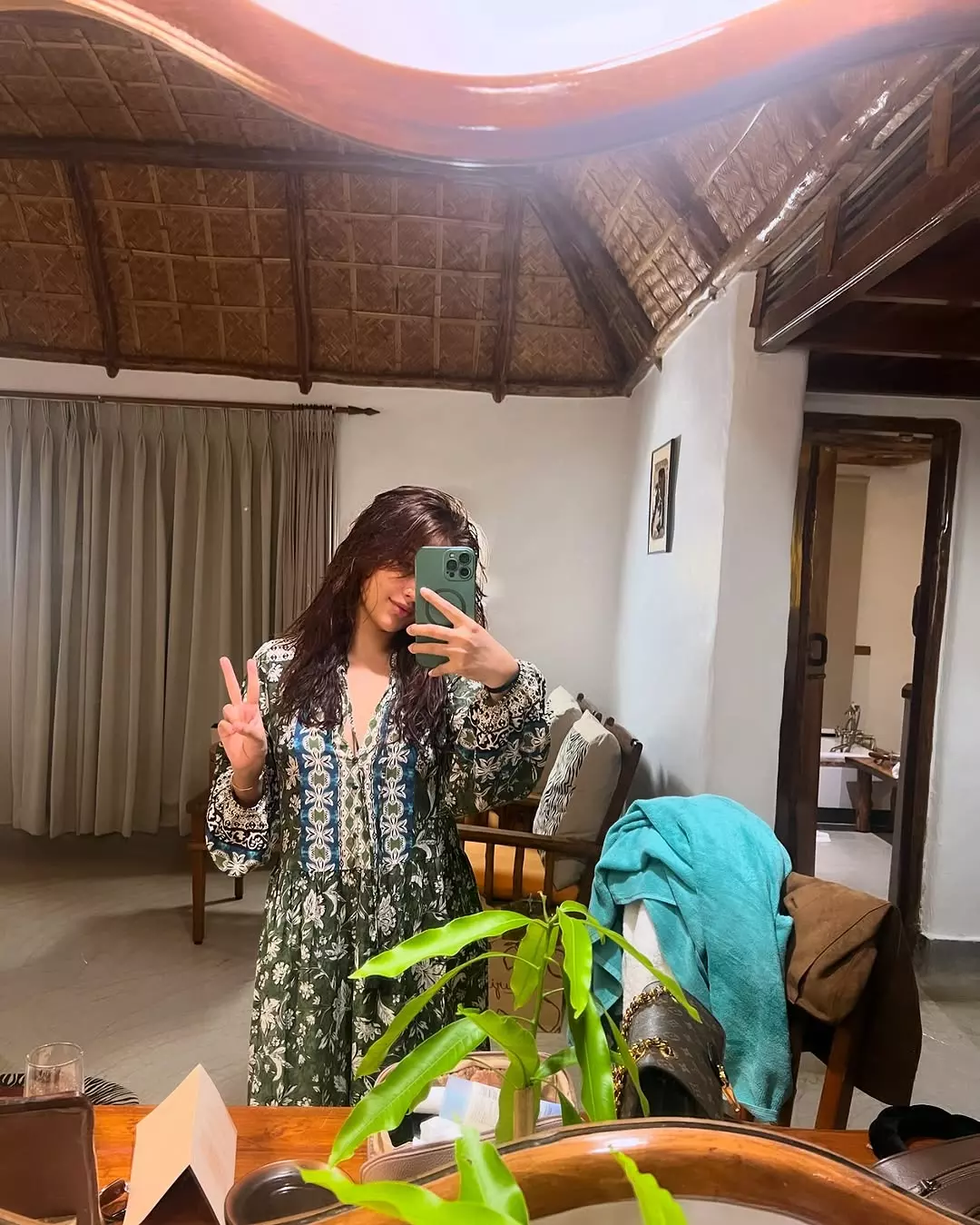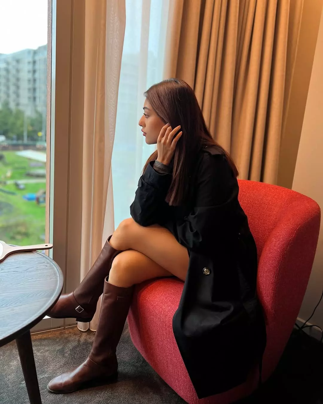 In her latest Instagram post, Anu Emmanuel shared a stunning photo of herself holding a coffee mug, exuding both elegance and charm. Dressed in a casual white mini shirt, her natural, messy hair and minimal makeup perfectly complement her relaxed, laid-back vibe. The photo beautifully captures a candid moment of tranquility as she sips her coffee, radiating effortless beauty. The image has quickly captivated her fans, further establishing Anu as a fashion and beauty icon in the entertainment world.