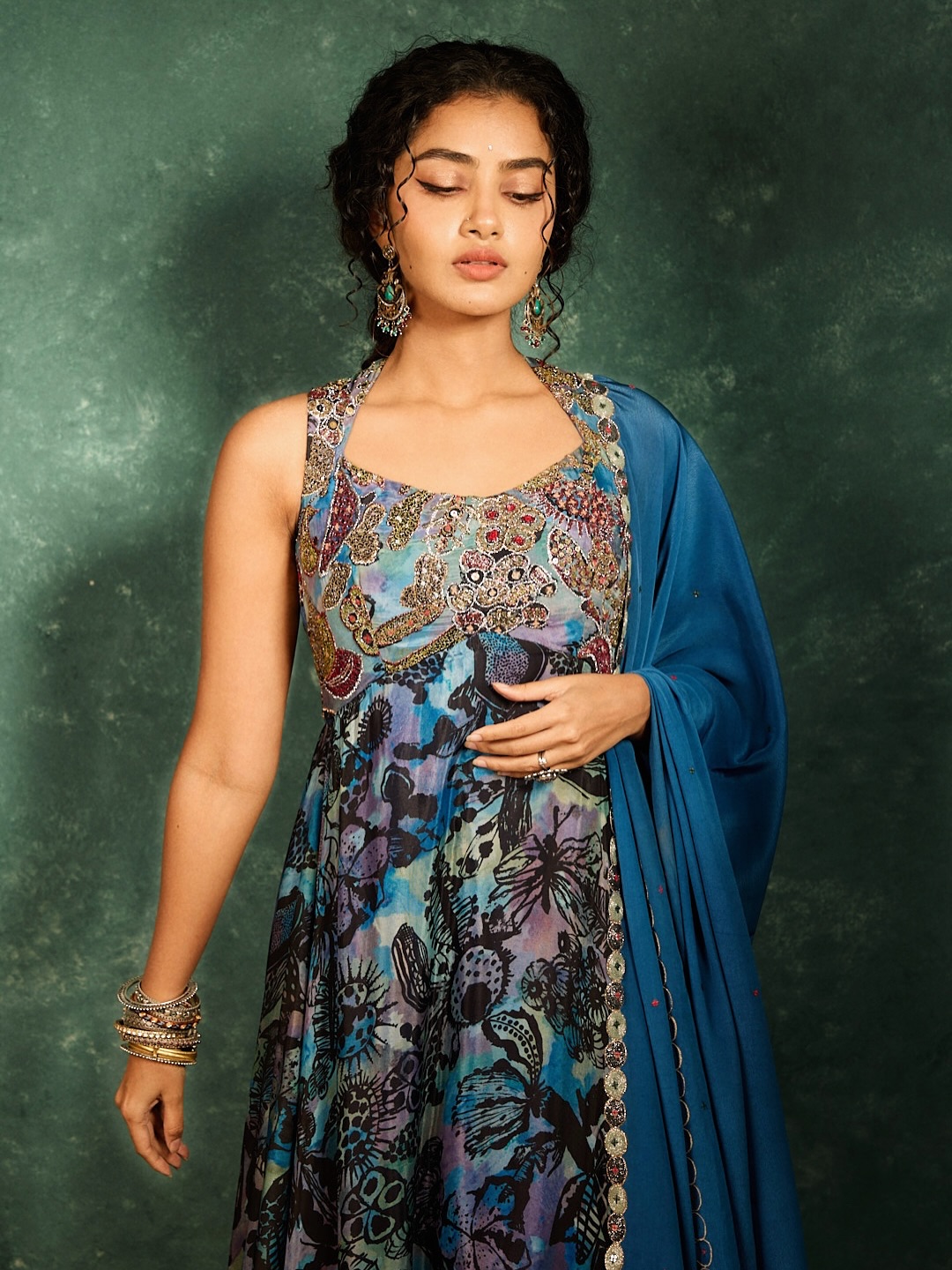 By: Tupaki Gallery Desk | 7 Oct 2025 11:31 AM ISTActress Anupama Parameswaran has once again mesmerized fans with her latest Instagram post, where she’s seen channeling celestial elegance in a surreal setting that seems to float between the sea and sky. Wearing a stunning ensemble by @aisharaoofficial, Anupama strikes the perfect balance of modern glam and artistic charm. The outfit’s dreamy silhouette is elevated by statement earrings from @sangeetaboochra, and a delicate hand stack curated from @sangeetaboochra, @shylebyastha, and @anumerton. Her look is grounded literally and stylistically with handcrafted footwear by @aprajitatoor.