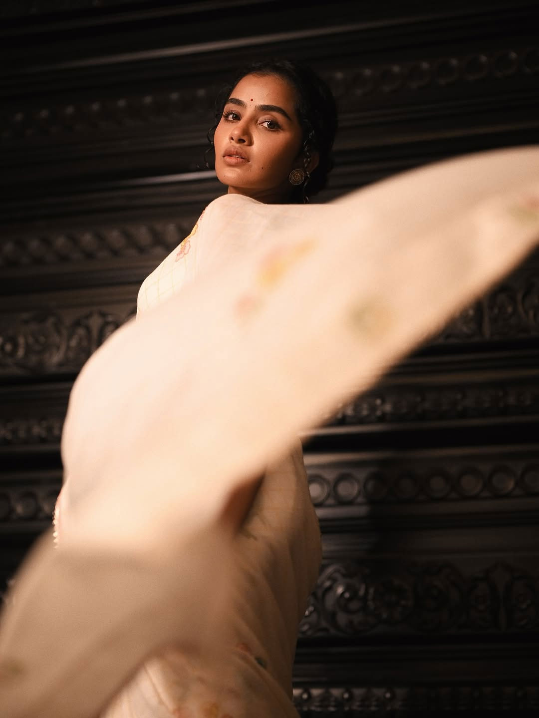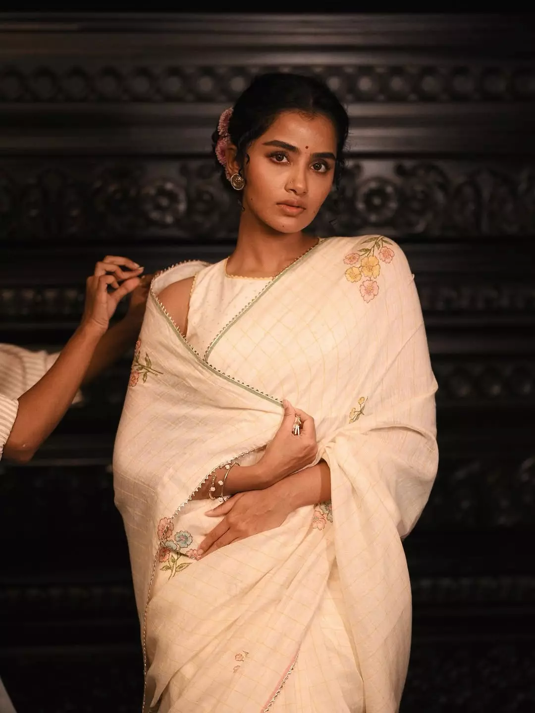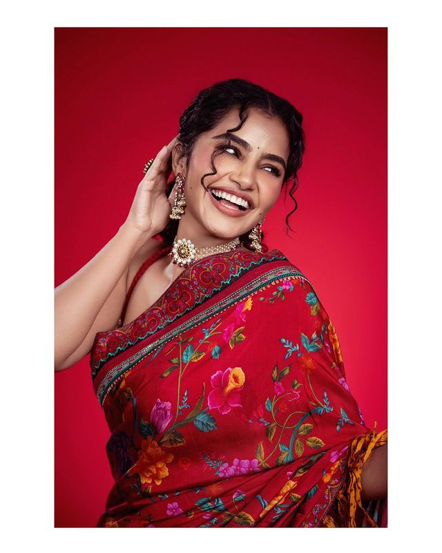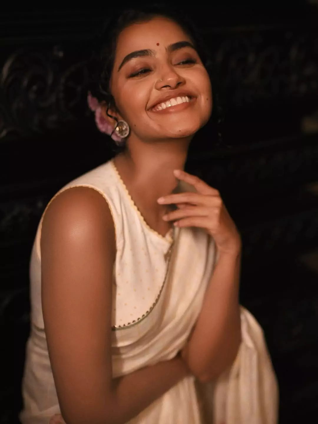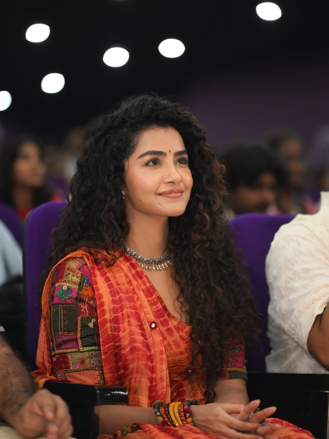 Anupama Parameswaran shared a fresh picture on Instagram that has charmed her followers. She wore a vibrant ethnic saree and smiled warmly while seated at an event. Her caption read, “Thannanam thenni thenni thedi vannoru maargazhikaattu 😅”. It added a playful tone to the post. The credits mentioned @medha.in for her dress, @tyohaarsilverjewellery for jewellery, styling by @poojakaranam, and the style team of @keerthi.madhusudan and @teja_na_peru. The photography credit went to @storiesbydeepu.