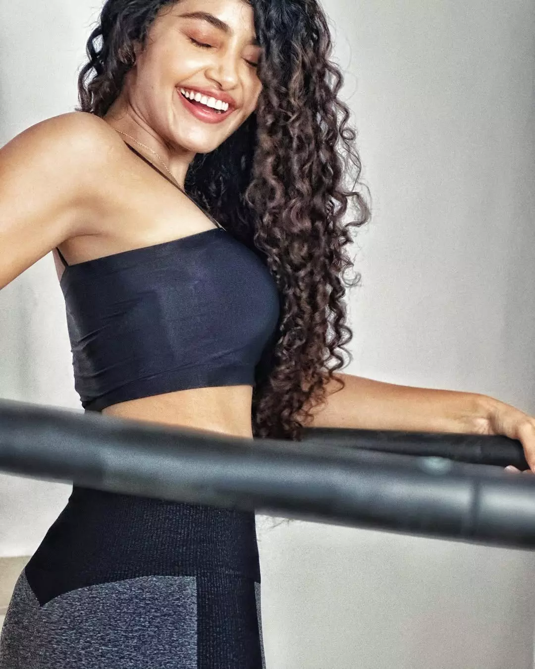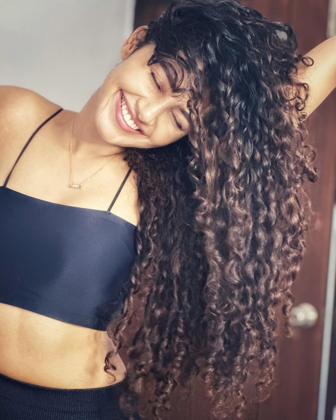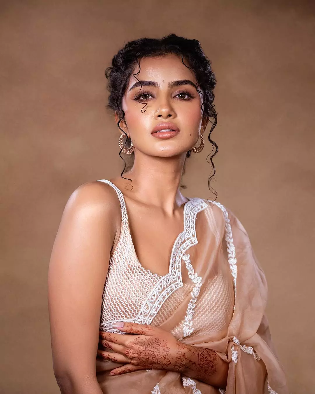 Anupama Parameswaran radiates pure joy in this ethereal portrait, her infectious smile lighting up a soft beige canvas.