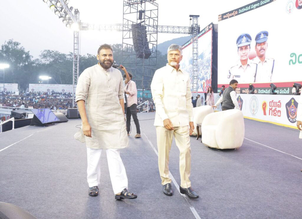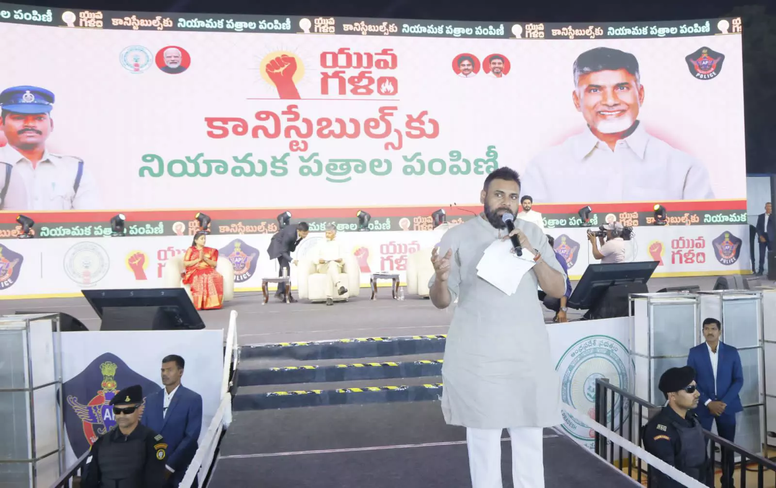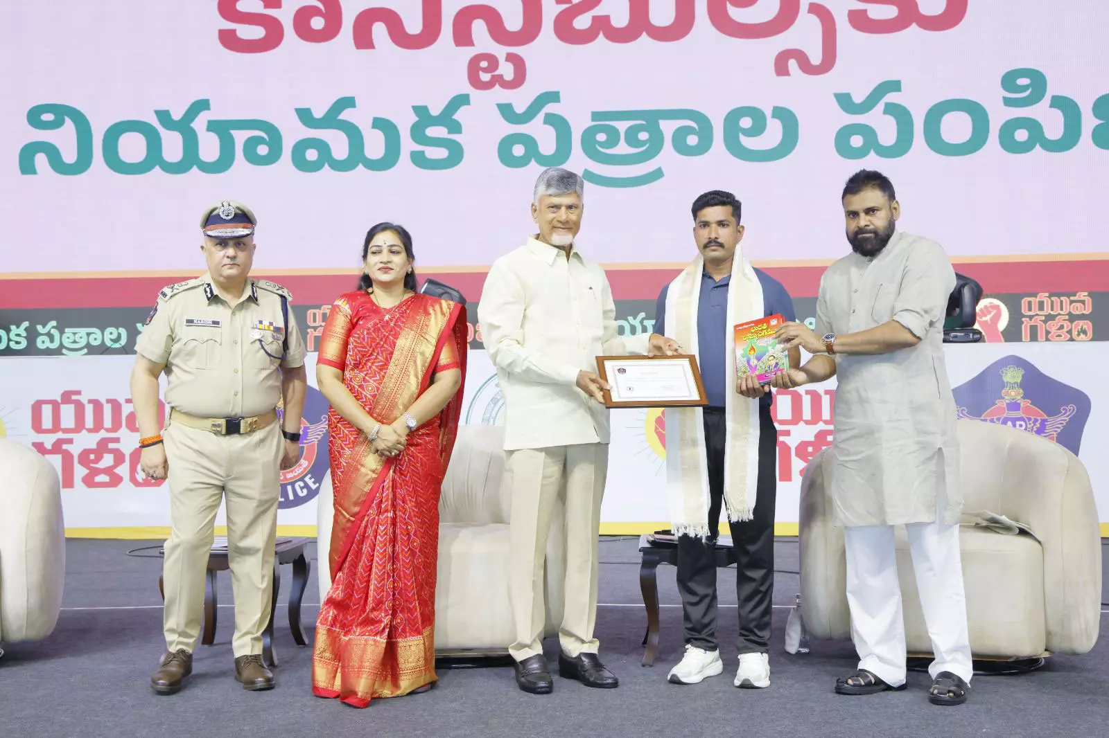 Chief Minister Nara Chandrababu Naidu, Deputy Chief Minister Pawan Kalyan, and Home Minister Vangalapudi Anitha graced the event, handing over letters to 5,757 newly selected constables.