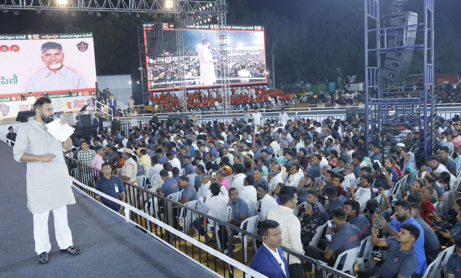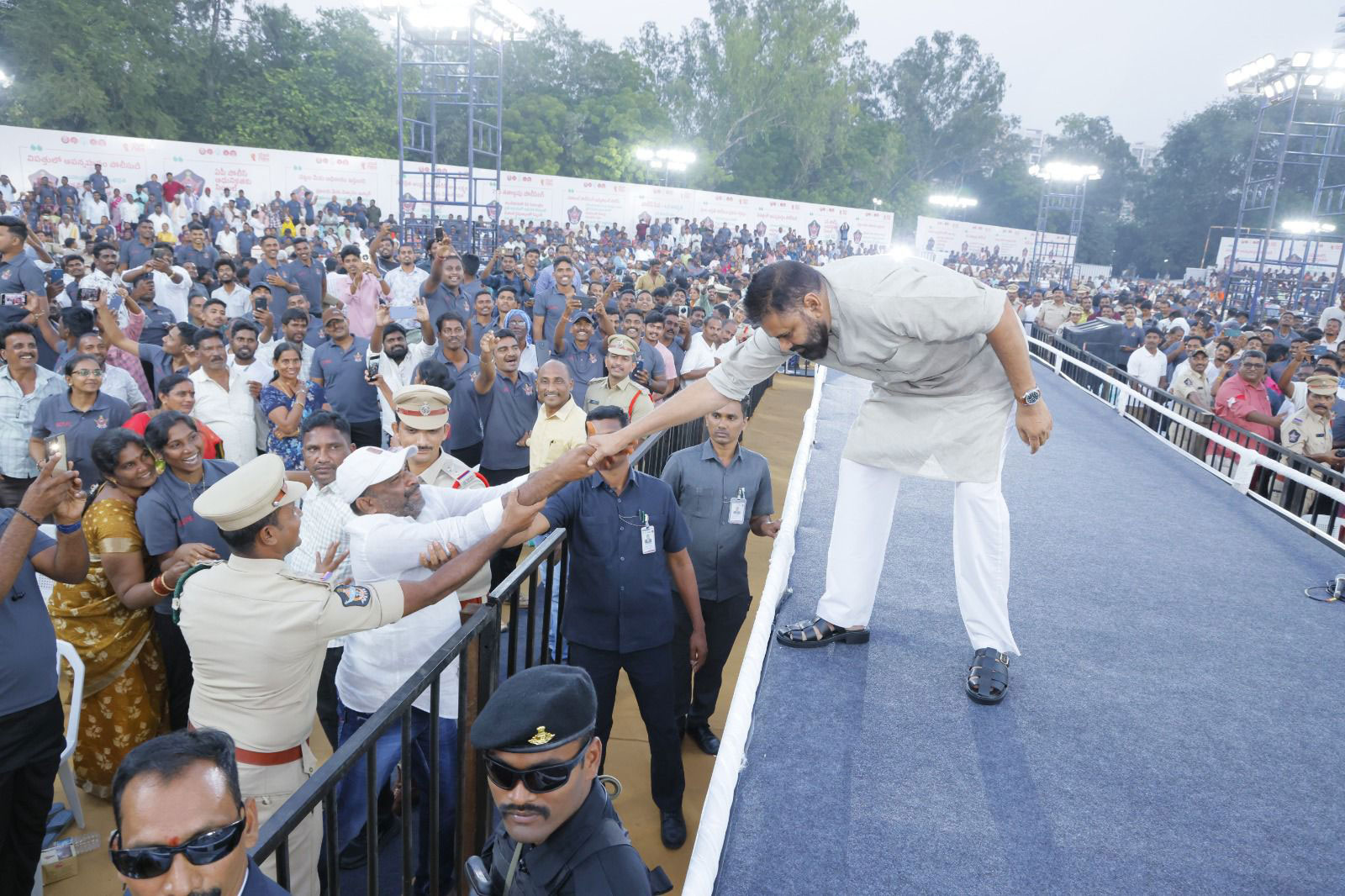 The appointment letter distribution for new constables was conducted on a grand scale at the APSP 6th Battalion Parade Ground in Mangalagiri. Chief Minister Nara Chandrababu Naidu, Deputy Chief Minister Pawan Kalyan, and Home Minister Vangalapudi Anitha graced the event, handing over letters to 5,757 newly selected constables.