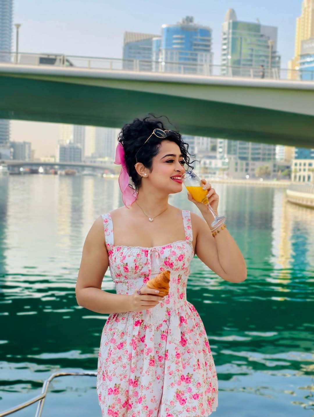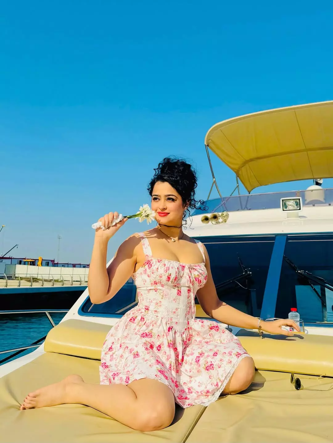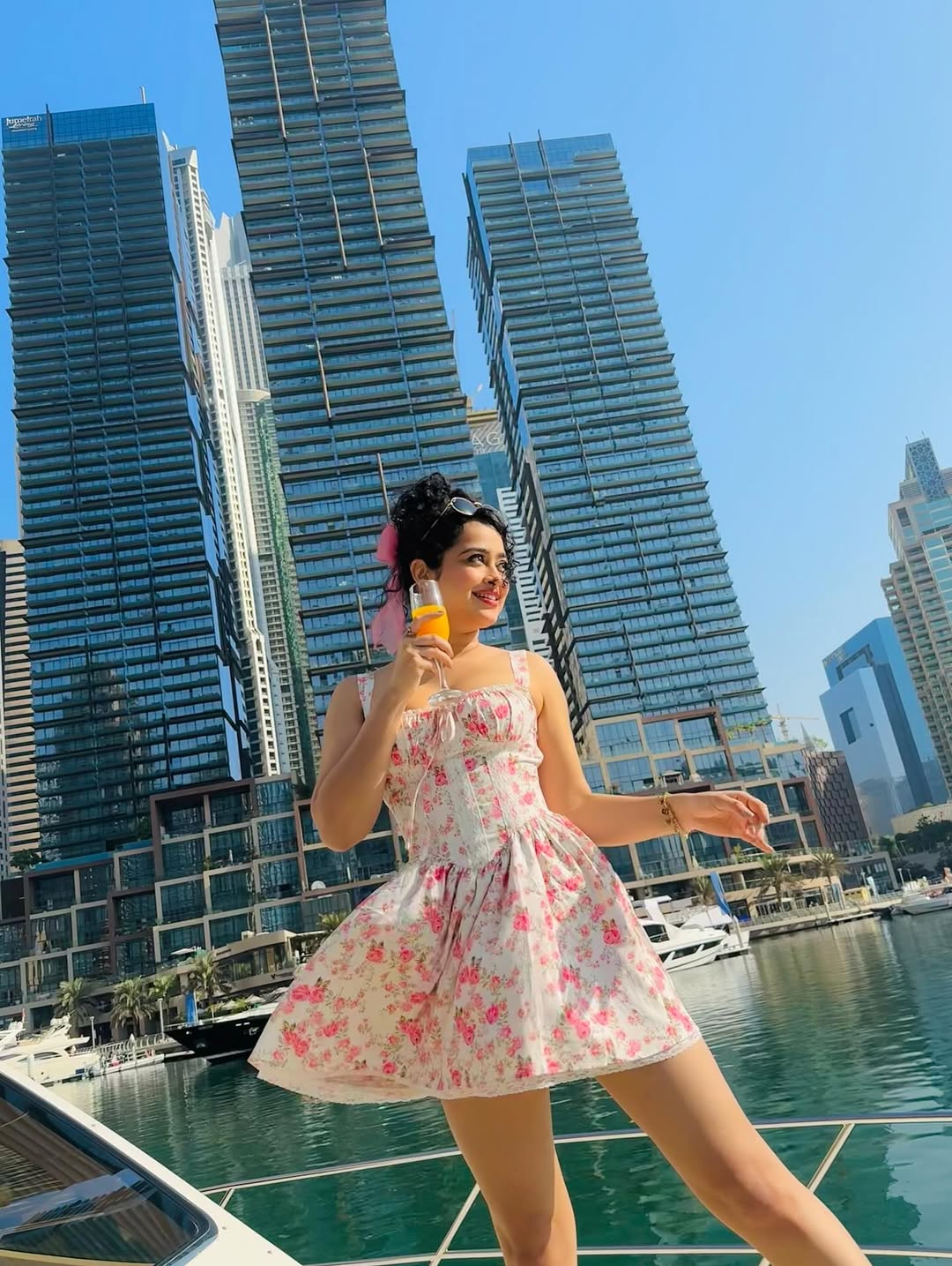 Off-screen, she shares glimpses of her personal life with fans on social media. Recently, she embraced her “Soft Girl Era” during a luxurious yacht outing at Dubai Marina, looking stunning in a delicate floral ensemble. She credited @soul__of__sea and @danie_the_prince for capturing the magical moments, offering fans a peek at her elegant yet playful side.