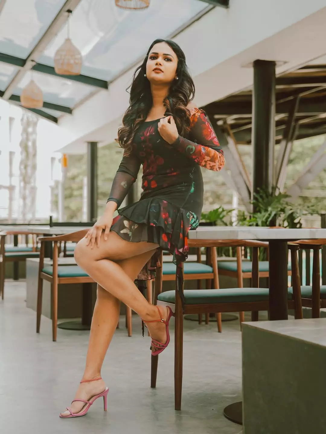 In the recent Instagram post, Ariyana shared a picture, exuding grace in a floral dress. Her caption reads, "OKk cool aithe... 😎" along with a set of hashtags, including #ariyanaglory and #ariyana. The photo taken at a stylish location is just awesome and her saree consists of a colorful look paired with stylish heels.