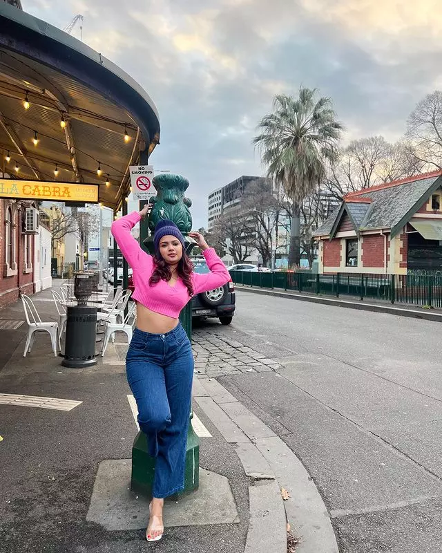 This bold ensemble skillfully highlights her curves, leaving her fans in awe of her stunning appearance.