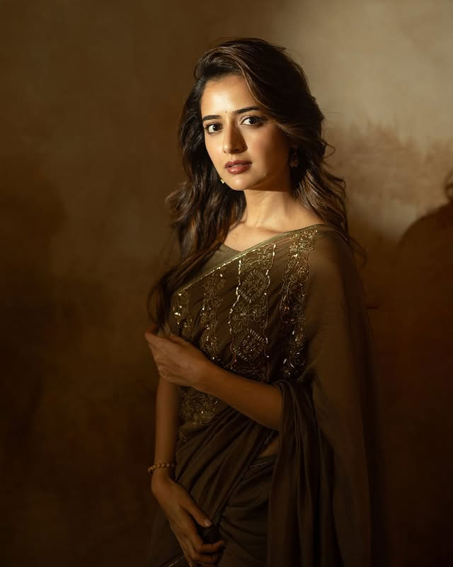 Ashika Ranganath is once again grabbing attention on social media with her latest Instagram post. In the picture, she is seen wearing a beautiful golden saree that perfectly highlights her graceful look. The lighting and background give a rich and elegant feel.