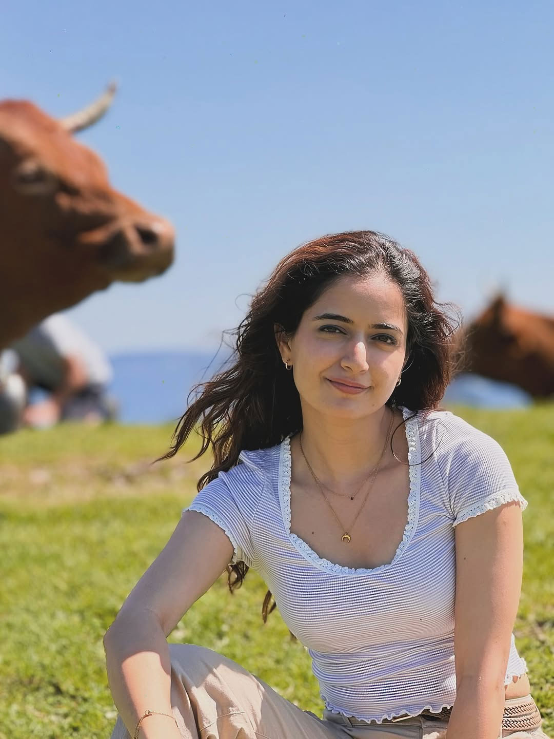 The natural light adds charm to the frame. She wears a soft smile that matches the calm mood of the setting.Her caption says, “August 🎀✨🤍.” These words show her excitement for the new month.