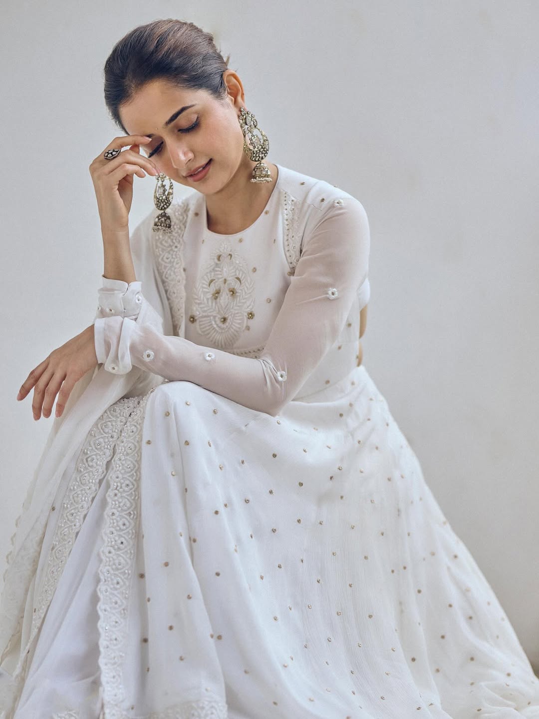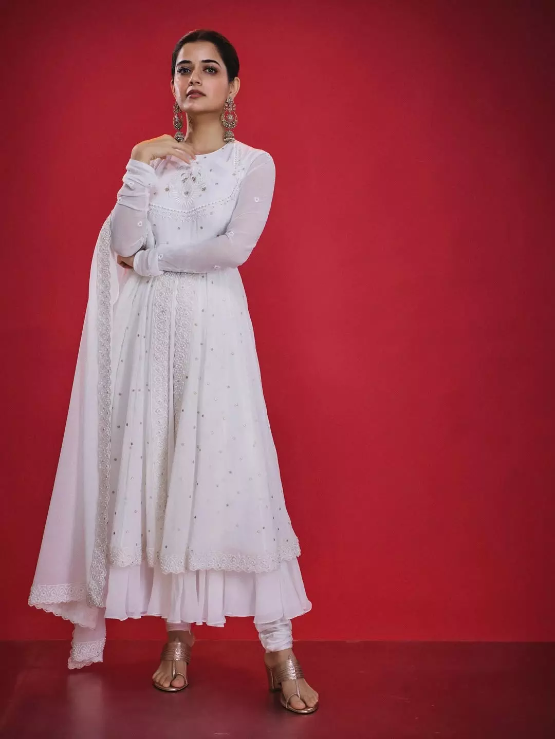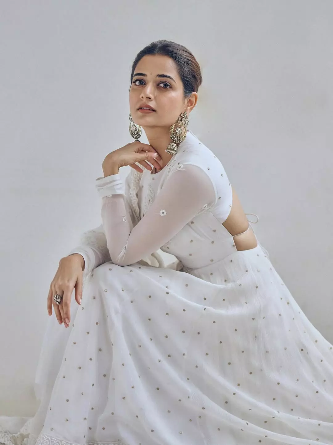 Recently, Ashika shared a few scintillating pictures of herself from a photoshoot. Wearing a white anarkali lehenga set with minimal embroidery and regal jewellery, Ashika looks stunningly beautiful in these pictures.