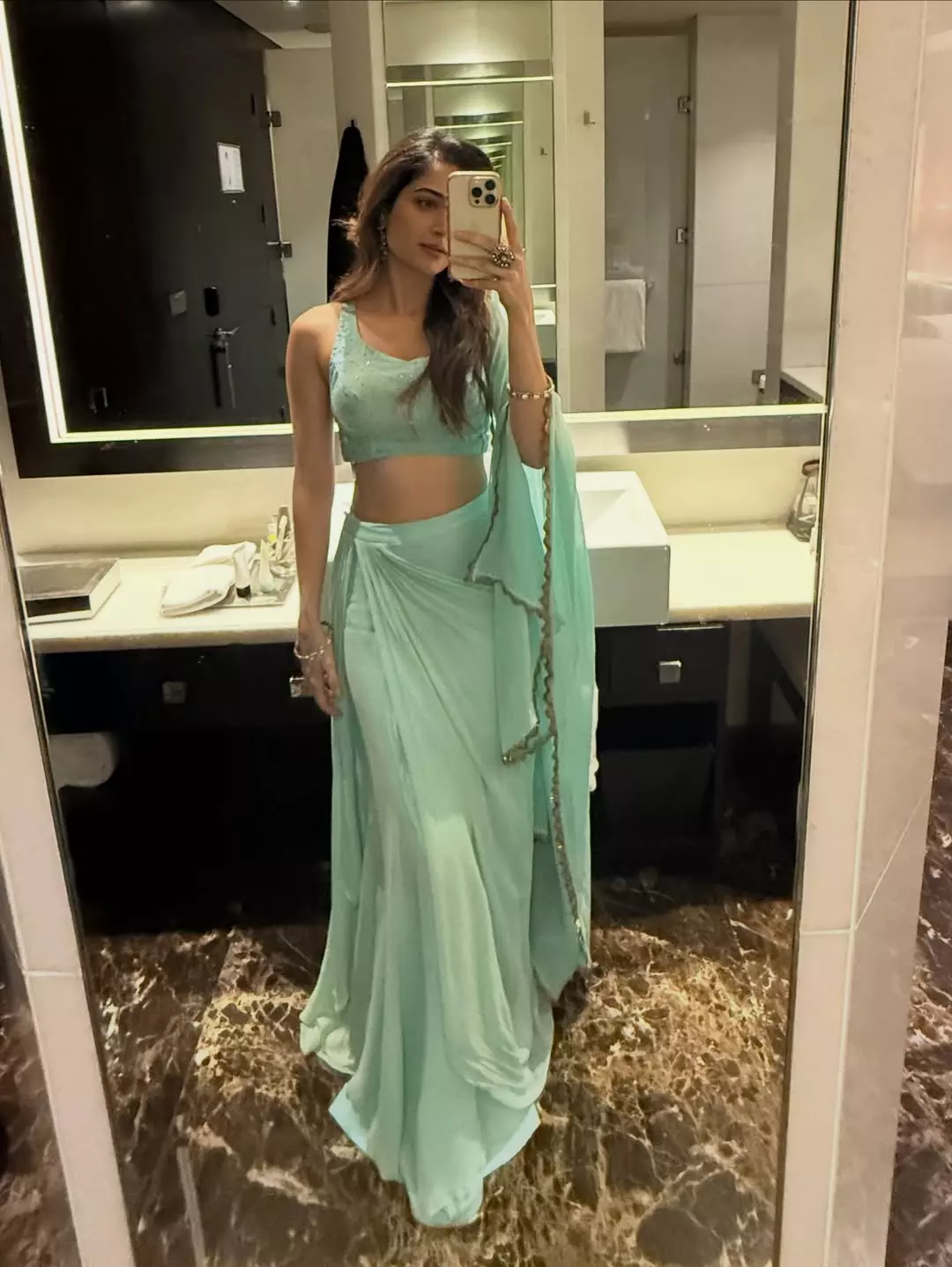 Ashika Ranganath stuns in turquoise lehenga mirror selfie