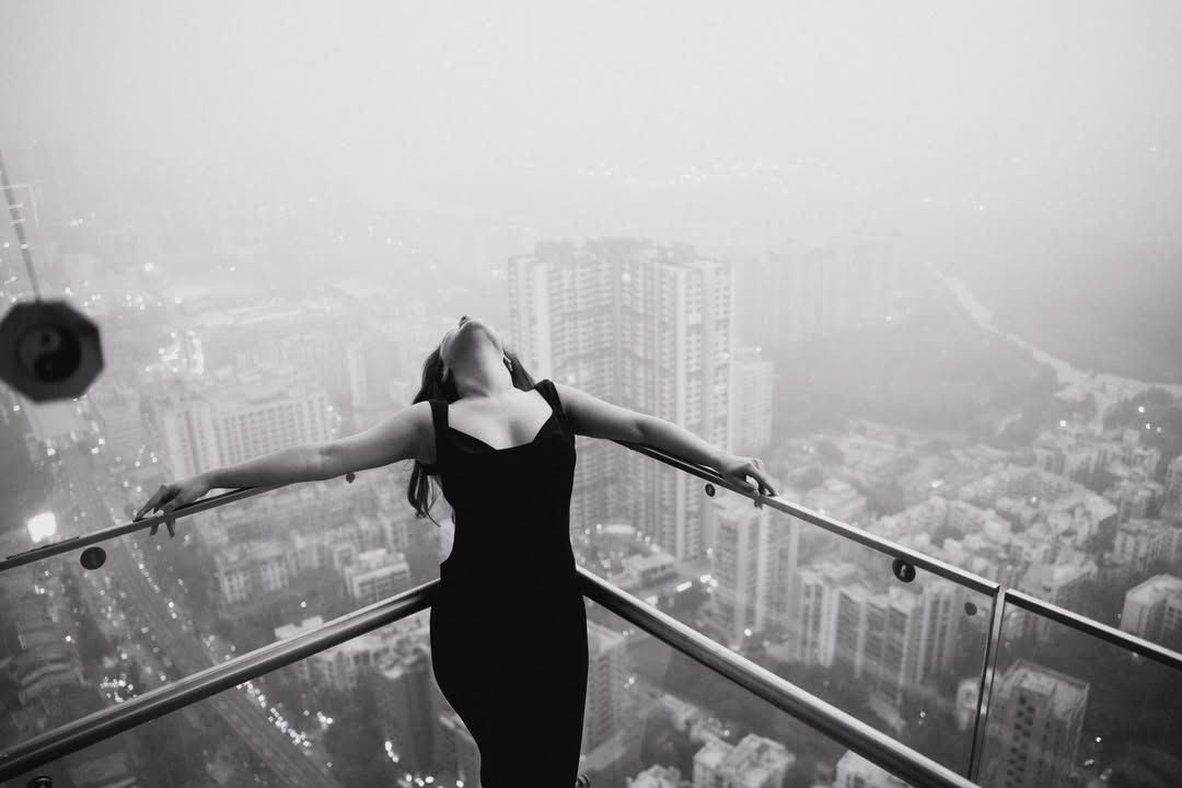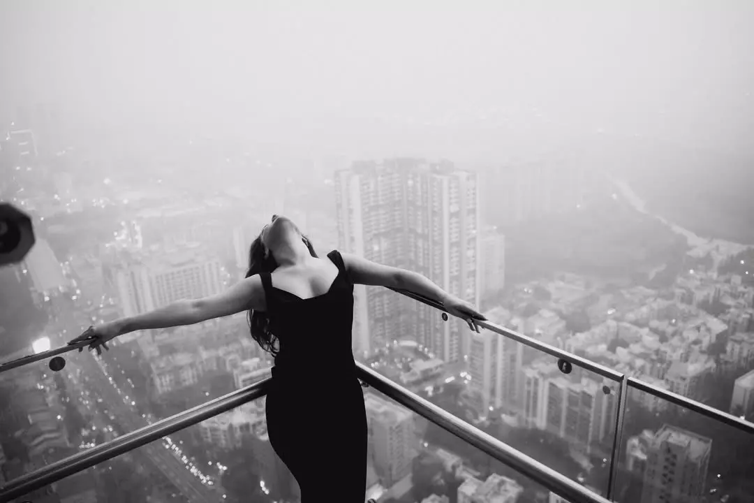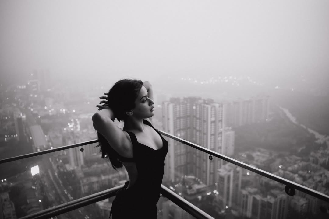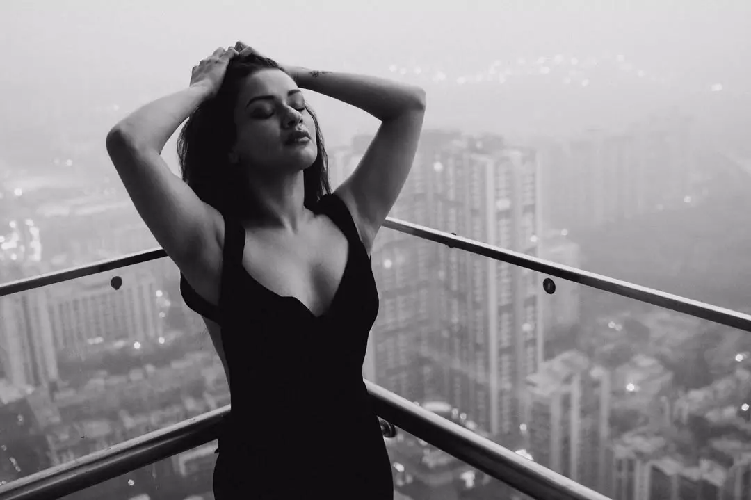 By: Tupaki Gallery Desk | 12 March 2026 1:39 PM ISTAvneet Kaur captivates in this mesmerizing black-and-white photo, striking a mystical pose on a high-rise balcony with the city skyline shrouded in fog. She stands in a sleek black dress, hands gracefully raised to her flowing hair, exuding an enigmatic allure—She is rather mystical / That one / Somehow within reach / Yet unable to hold @dieppj.