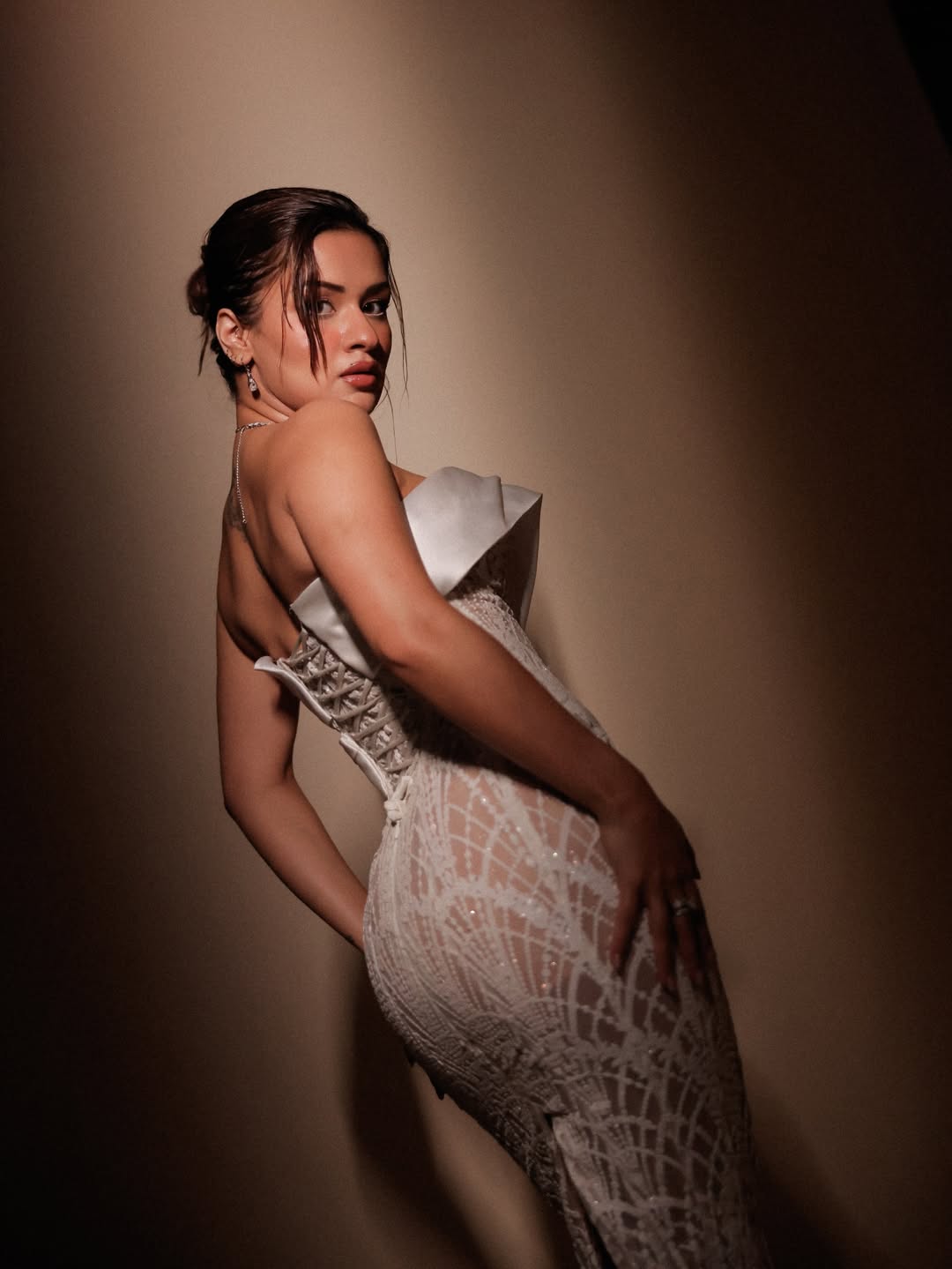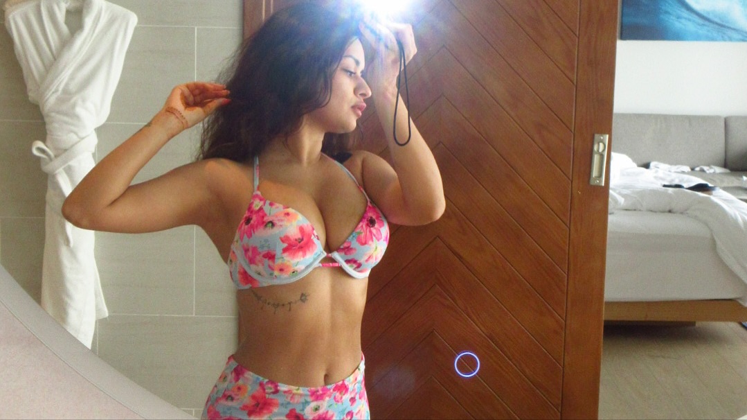 Avneet Kaur radiates pure summer vibes in this breathtaking beach photoshoot, where I can feel summer in the air. Posing confidently on a sandy shore with turquoise waters and swaying palms behind her, she wears a vibrant purple crochet bandeau bikini top paired with a leopard-print sarong, accessorized with bold gold bangles, earrings, and a chic tattoo peeking out. Her long, wavy hair flows freely as she embraces the sun-kissed glow, exuding effortless sensuality and joy in this tropical paradise snapshot.