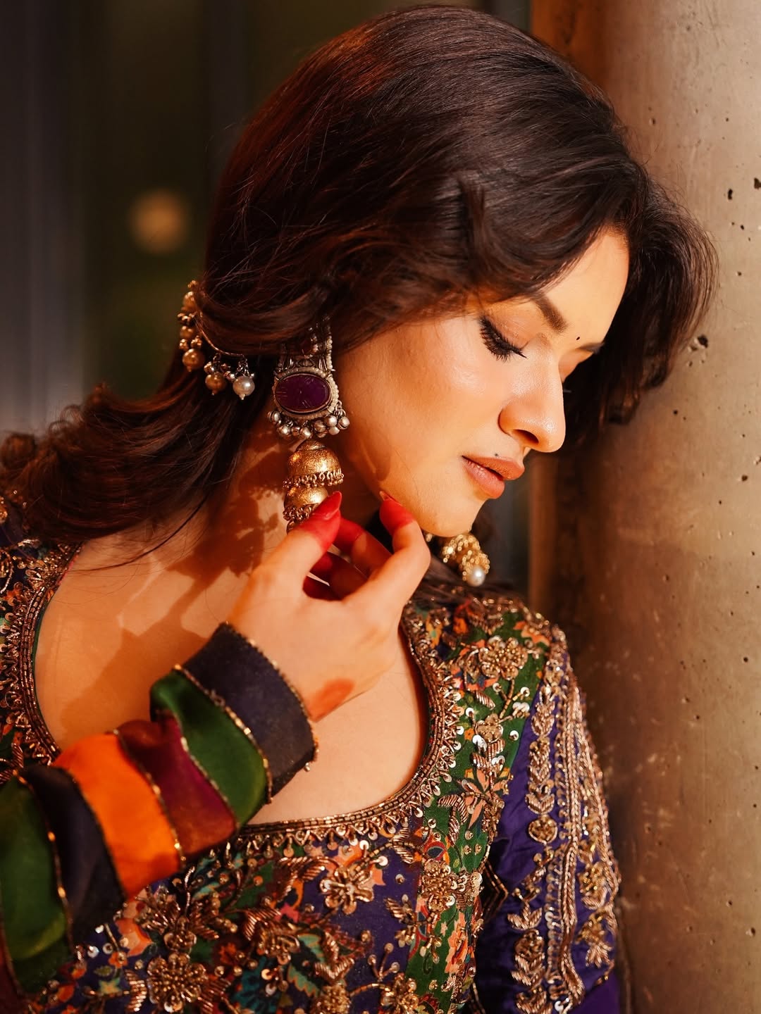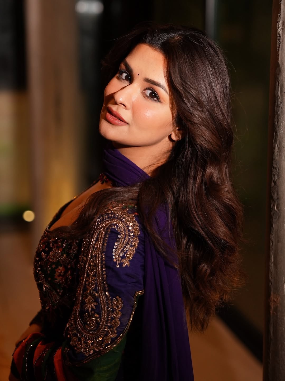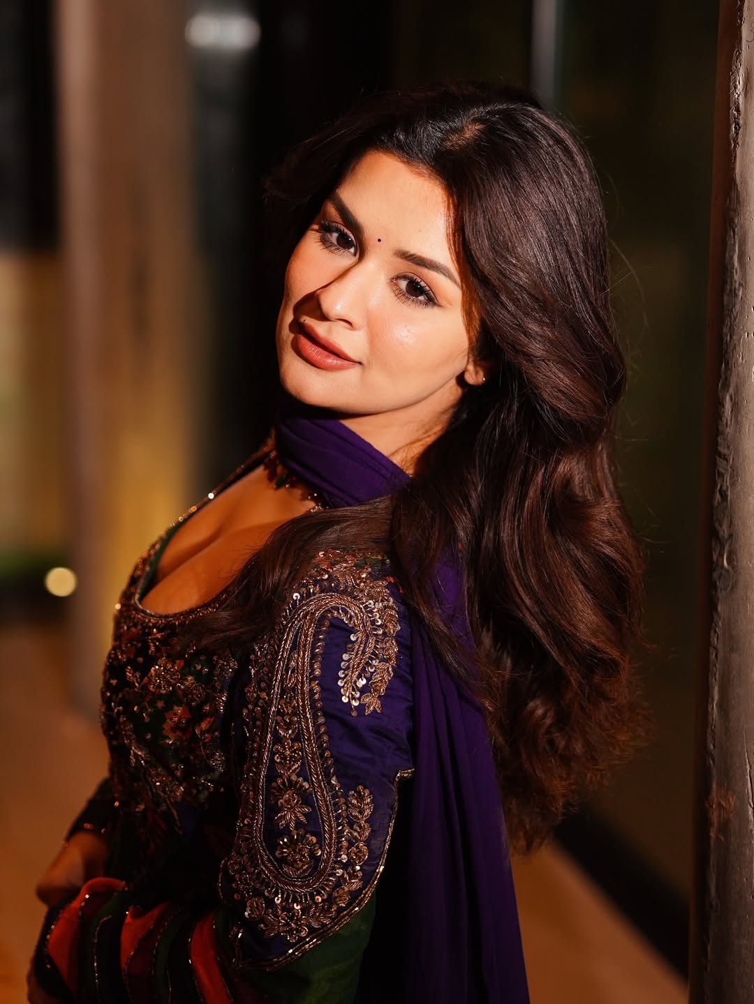 Draped in exquisite Indian wear, Avneet effortlessly bridges the gap between modern aesthetics and timeless heritage. The intricate designs from @aayushimaniarofficial come alive on her, showcasing craftsmanship that speaks volumes of India’s rich textile history. Each stitch, each embellishment, tells a story, and Avneet’s elegant presence amplifies that narrative with warmth and vibrancy.