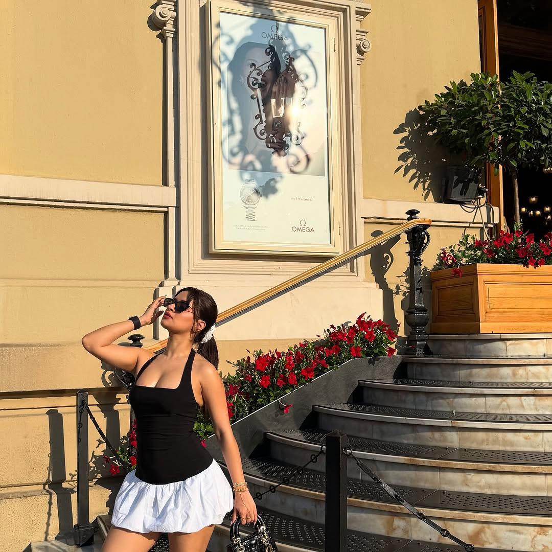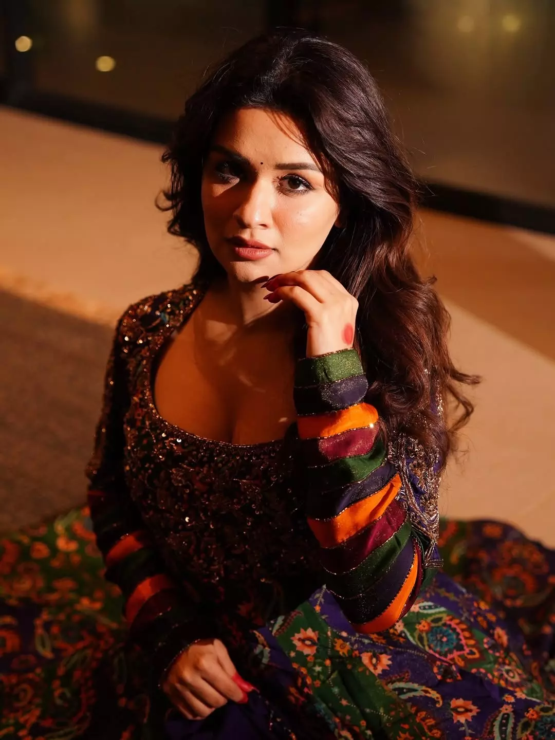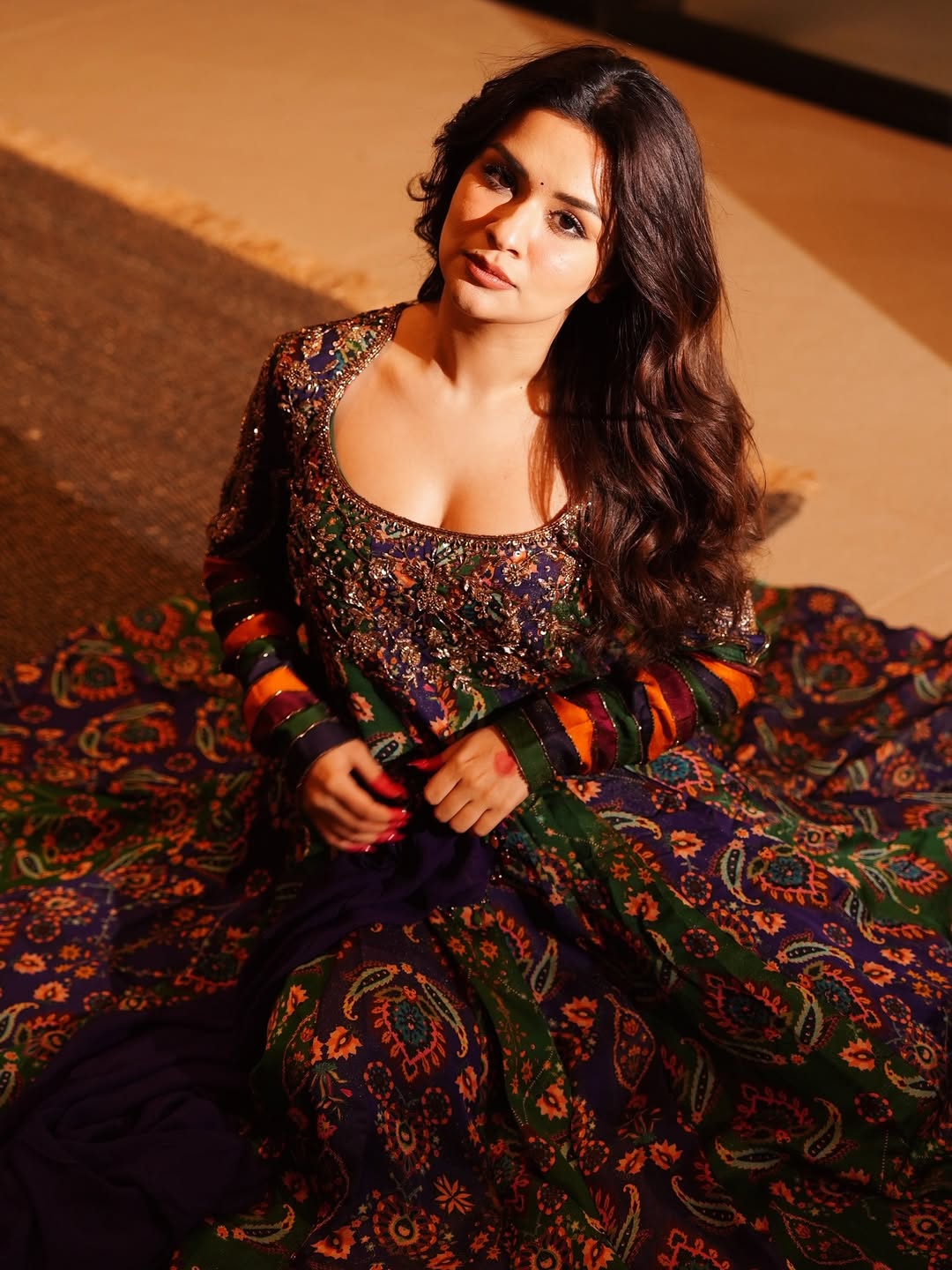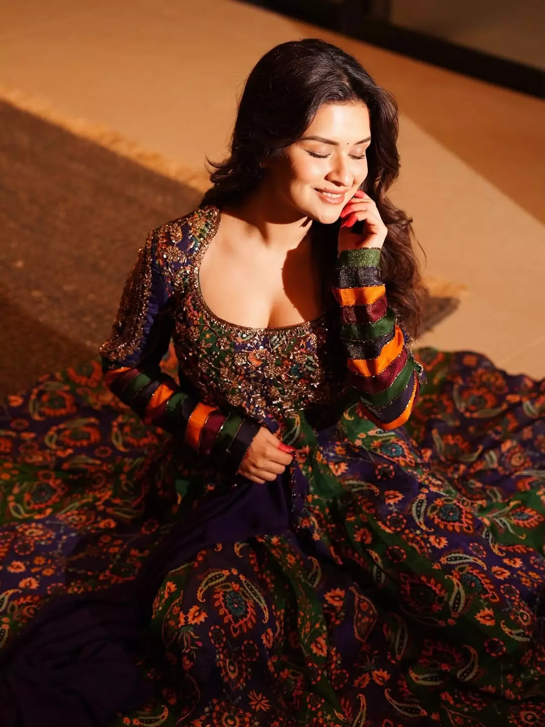 Draped in exquisite Indian wear, Avneet effortlessly bridges the gap between modern aesthetics and timeless heritage. The intricate designs from @aayushimaniarofficial come alive on her, showcasing craftsmanship that speaks volumes of India’s rich textile history. Each stitch, each embellishment, tells a story, and Avneet’s elegant presence amplifies that narrative with warmth and vibrancy.