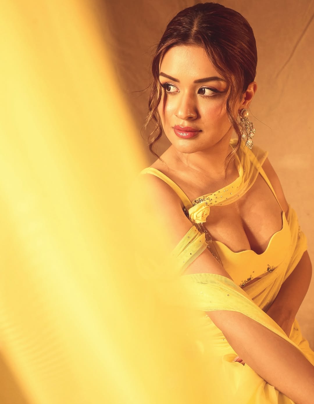 Avneet Kaur dazzles in this elegant white off-shoulder satin corset gown from @kostume_county, exuding timeless sophistication with soft waves, glowing makeup, and delicate pearl jewelry. She captioned the stunning image poetically: “I have found beauty in the whimsically ordinary.”.