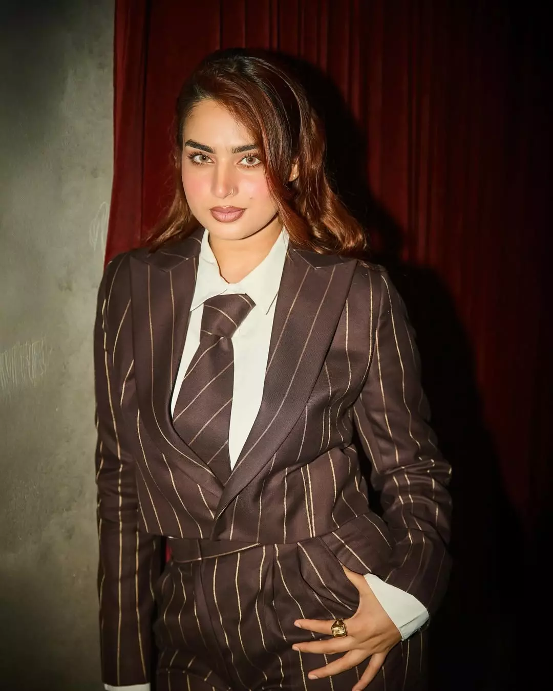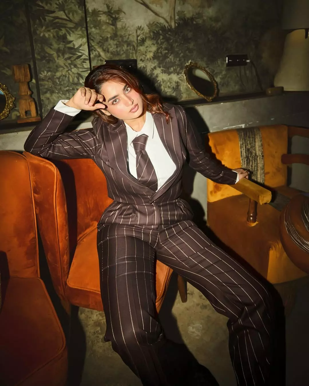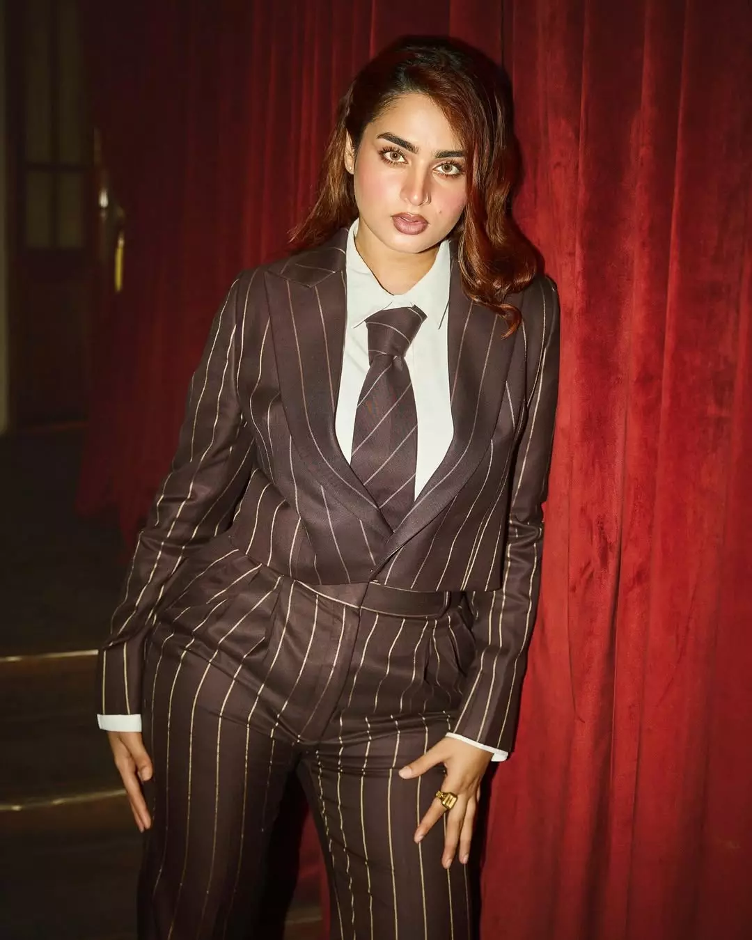 By: Priya Chowdhary Nuthalapti | 9 Oct 2025 2:46 PM ISTAyesha Khan shared a new photo on Instagram. In the picture, she is seen sitting on a chair in a formal brown pinstriped suit with a white shirt and tie. The post was shared for Hollywood Reporter India. She added the caption, “For @hollywoodreporterindia Creator A-list!” The photo credit goes to @gohil_jeet. The styling was done by @anshudixit__ and @stylewithroshnii. Her suit was from @hawa.mukri, and public relations were handled by @velvetropepr.