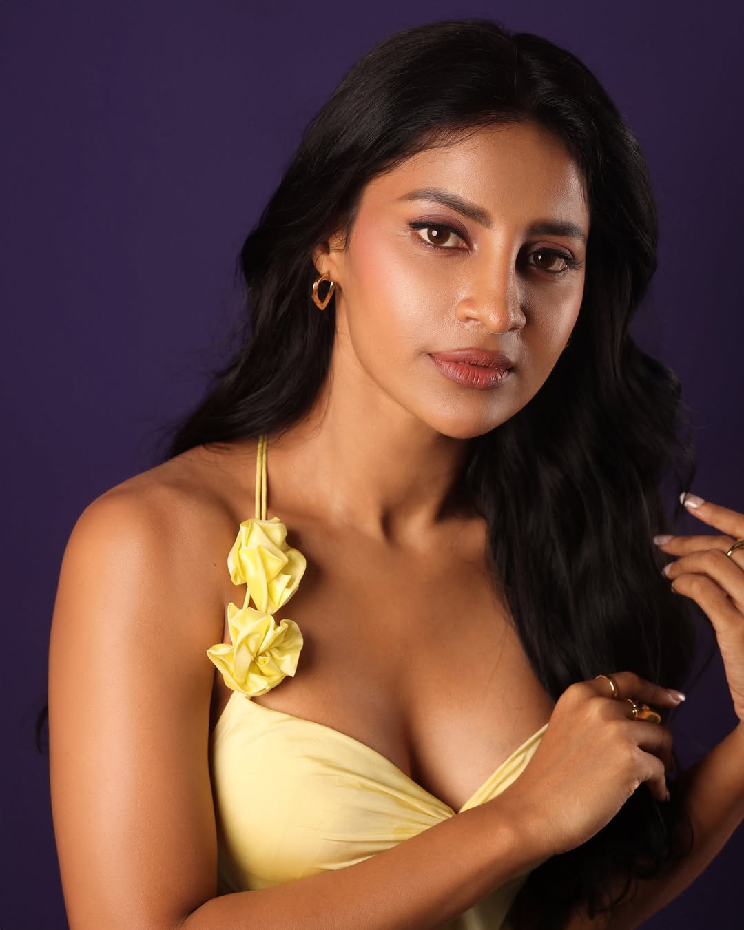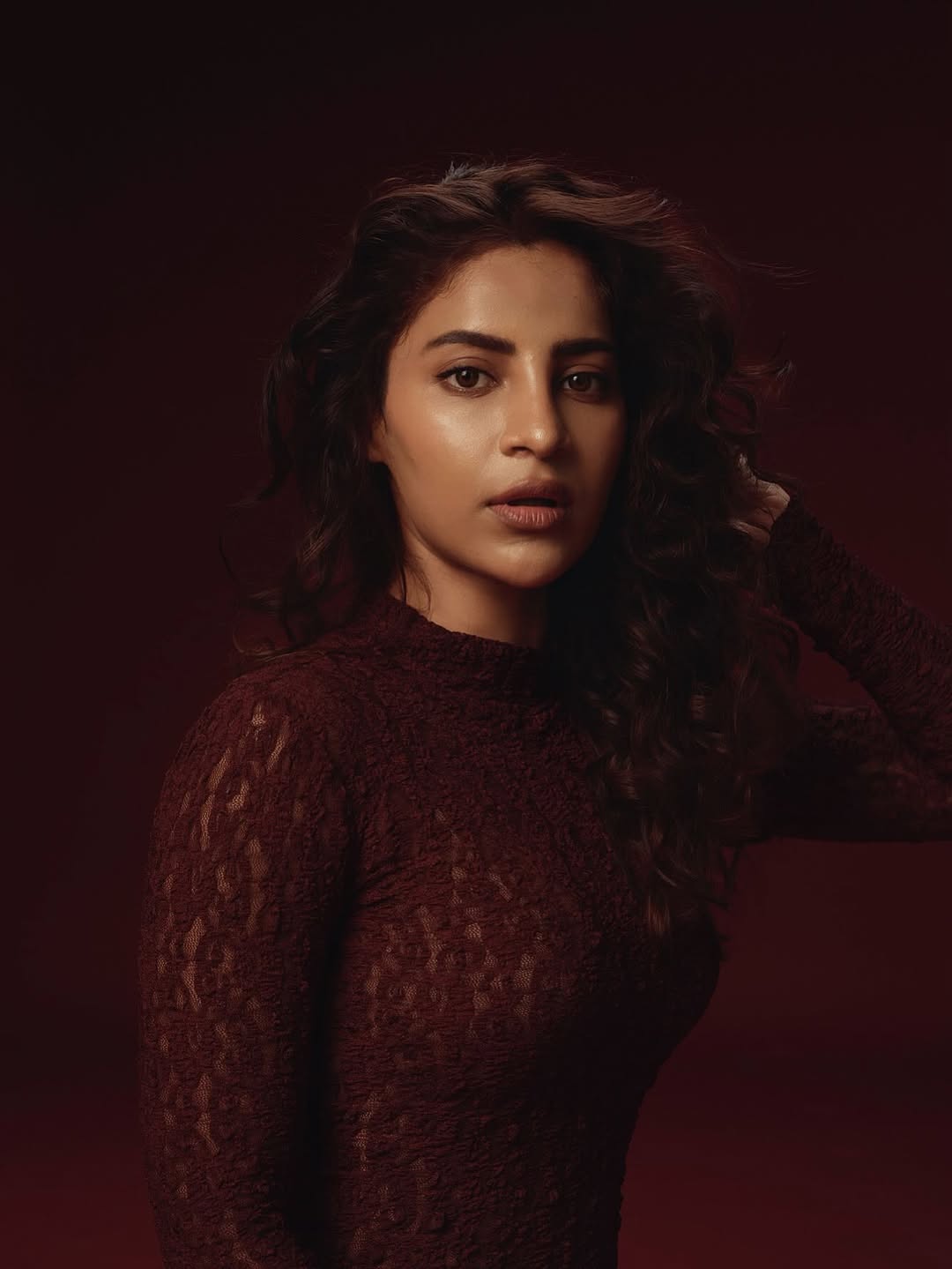 By: Tupaki Desk | 6 March 2026 4:12 PM ISTAyra Krishna commands attention in this intense studio photoshoot, reclining gracefully on a deep maroon floor that matches her form-fitting lace dress. The long-sleeved, high-neck burgundy gown clings elegantly to her figure, its intricate sheer lace pattern revealing subtle sophistication and strength. With one arm supporting her weight and the other relaxed at her side, she arches slightly, dark wavy hair cascading around her face as she gazes upward with a captivating, thoughtful expression—lips parted, eyes intense. The rich maroon backdrop and dramatic lighting accentuate her poised beauty and magnetic presence. She doesn’t chase the world, she reigns her inner one. //// @palakrungta_clicks the best pictures of mine—this empowering caption perfectly reflects her confident, introspective aura.