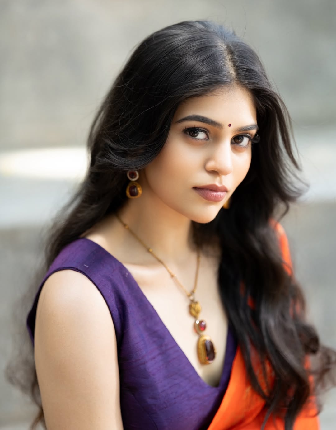 By: Tupaki Gallery Desk | 9 April 2026 10:19 AM ISTIn this striking gallery frame, Bandhavi Sridhar radiates effortless elegance and quiet confidence. Draped in a vibrant orange saree paired with a deep purple blouse, her look blends tradition with modern sophistication. The intricate detailing of the saree, complemented by carefully chosen jewelry, enhances her graceful presence without overpowering her natural charm.