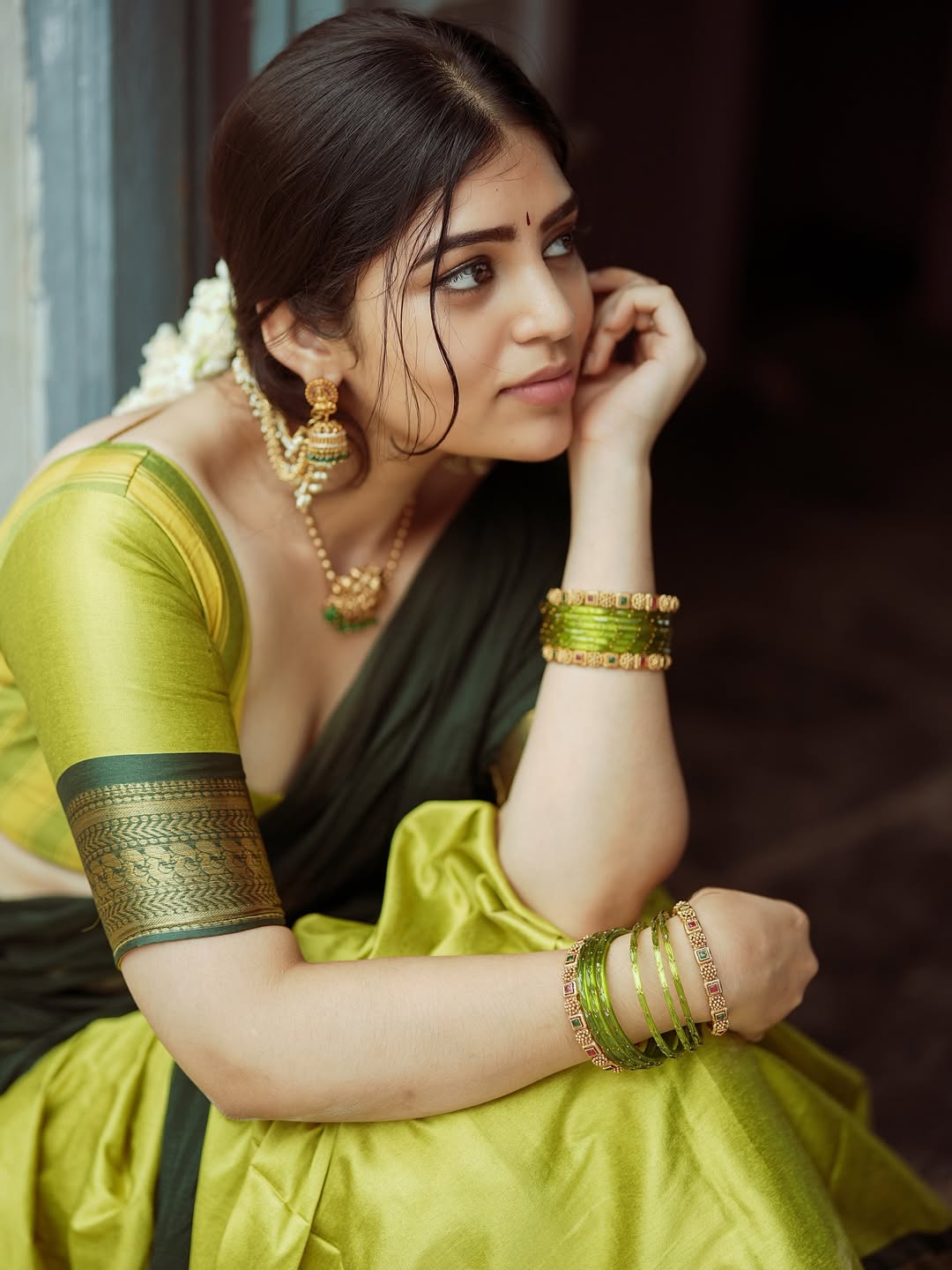 This gallery moment is a testament to Bandhavi Sridhar’s ability to captivate effortlessly—where simplicity, tradition, and expression come together in perfect harmony.