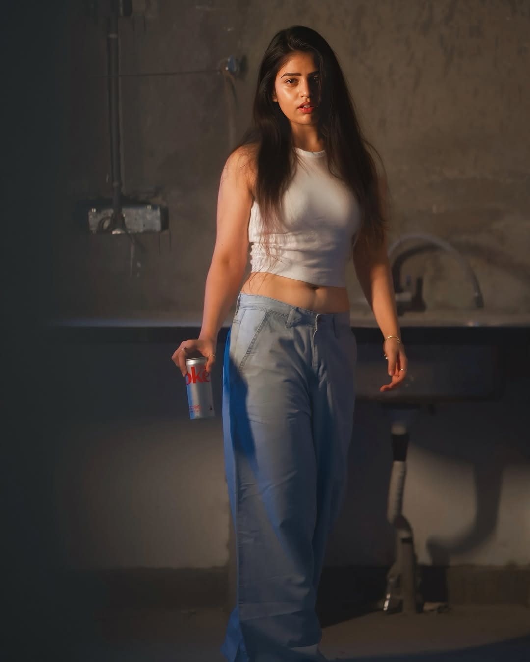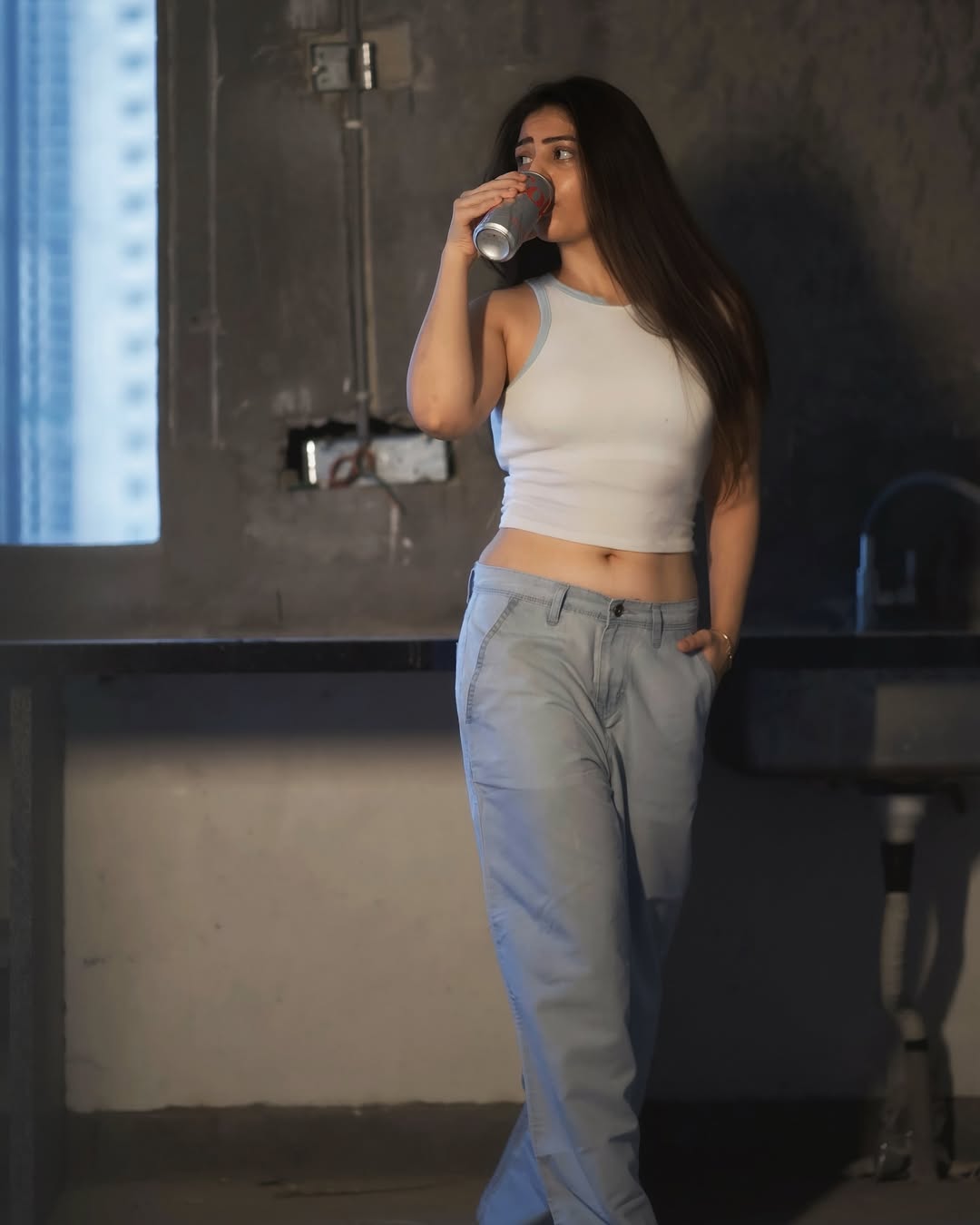 In the latest photos, she is seen wearing a white sleeveless top and a jeans. She is holding a Coke tin as well as showcasing her biceps.