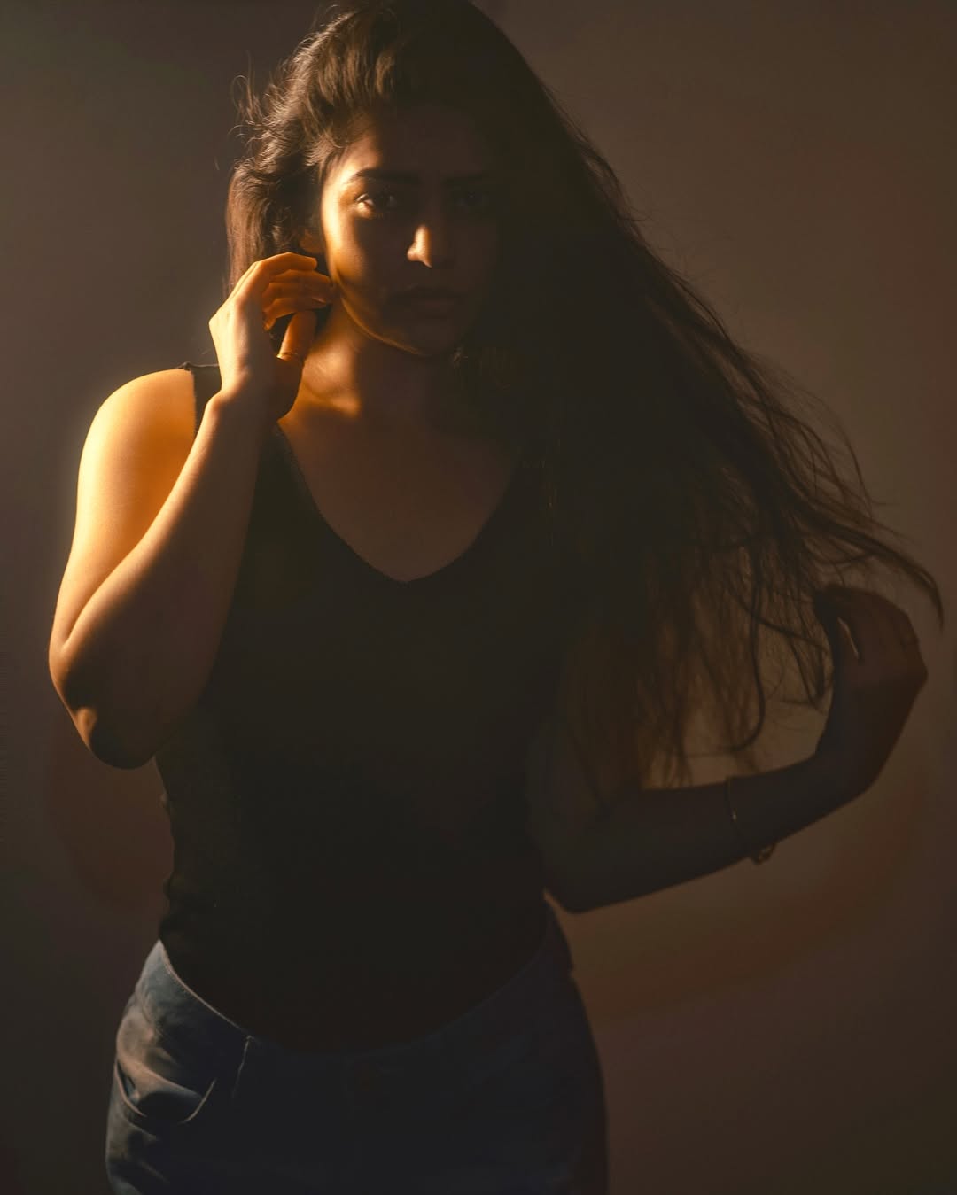 Bandhavi Sridhar has always been known for her expressive face and strong screen appeal. Her recent Instagram post once again shows why people admire her. In the picture, Bandhavi stands in moody lighting. Half of her face is gently touched by lightwhile the rest fades into shadow.