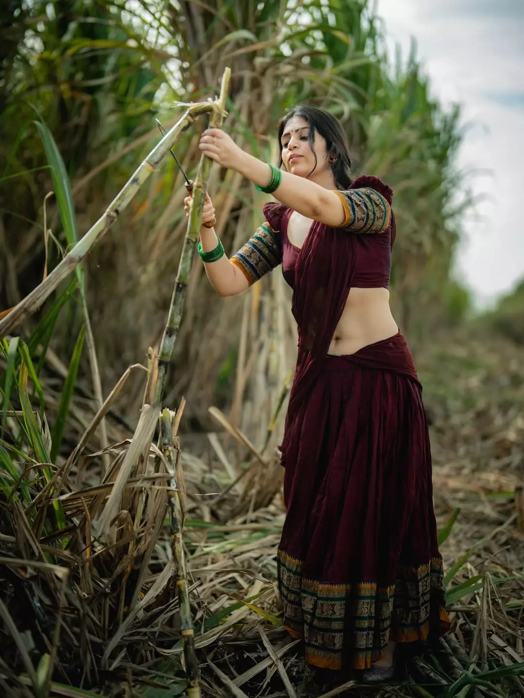 By: Tupaki Desk | 25 March 2026 3:35 PM ISTIn this serene riverside portrait, Bandhavi Sridhar carries quiet strength and grace. Seated on a rock with the flowing water and golden sunlight behind her, she looks over her shoulder with piercing eyes that speak volumes. Draped in a deep maroon traditional outfit with intricate embroidery and cut-out details, she embodies poise and power. She carries strength in her eyes
