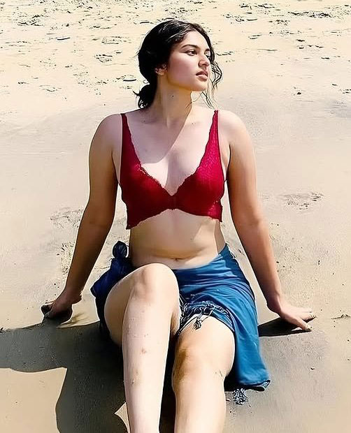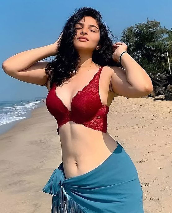 Kayadu Lohar Stuns in Red Lace Bralette & Teal Sarong