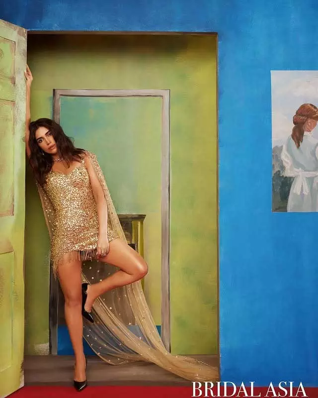 In recent Instagram post, Bhumi Pednekar exudes glamour in a dazzling golden sequin mini dress with a dramatic sheer cape. Striking a confident pose against a vibrant artistic backdrop, she showcases regal elegance as part of her Bridal Asia shoot. The caption crowned with emojis and the hashtag #TheRoyals highlights her majestic aura. Bhumi credits the creative team including @bridalasia, @sashajairam, @nupurmehta18, @nickyrajani-_ and @the.mad.hair.scientist showing appreciation for their roles.