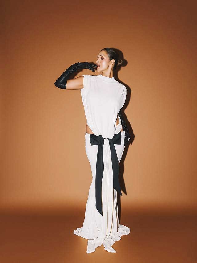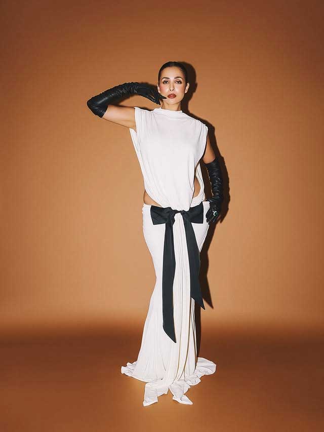 Malaika Arora delivers a fierce fashion moment in this striking ensemble that blends classic elegance with bold modernity.