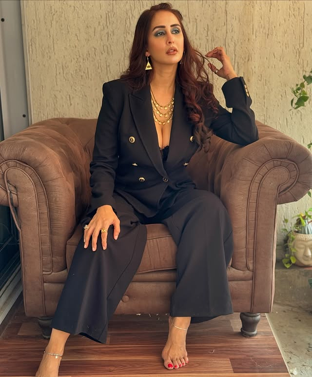 Recently, Chahat posted a picture on her Instagram. She wore a trendy black suit that highlighted her confidence. The suit had stylish details that made it stand out. She paired it with layered jewelry, adding elegance to her attire. The makeup was soft yet striking, enhancing her overall appeal.
