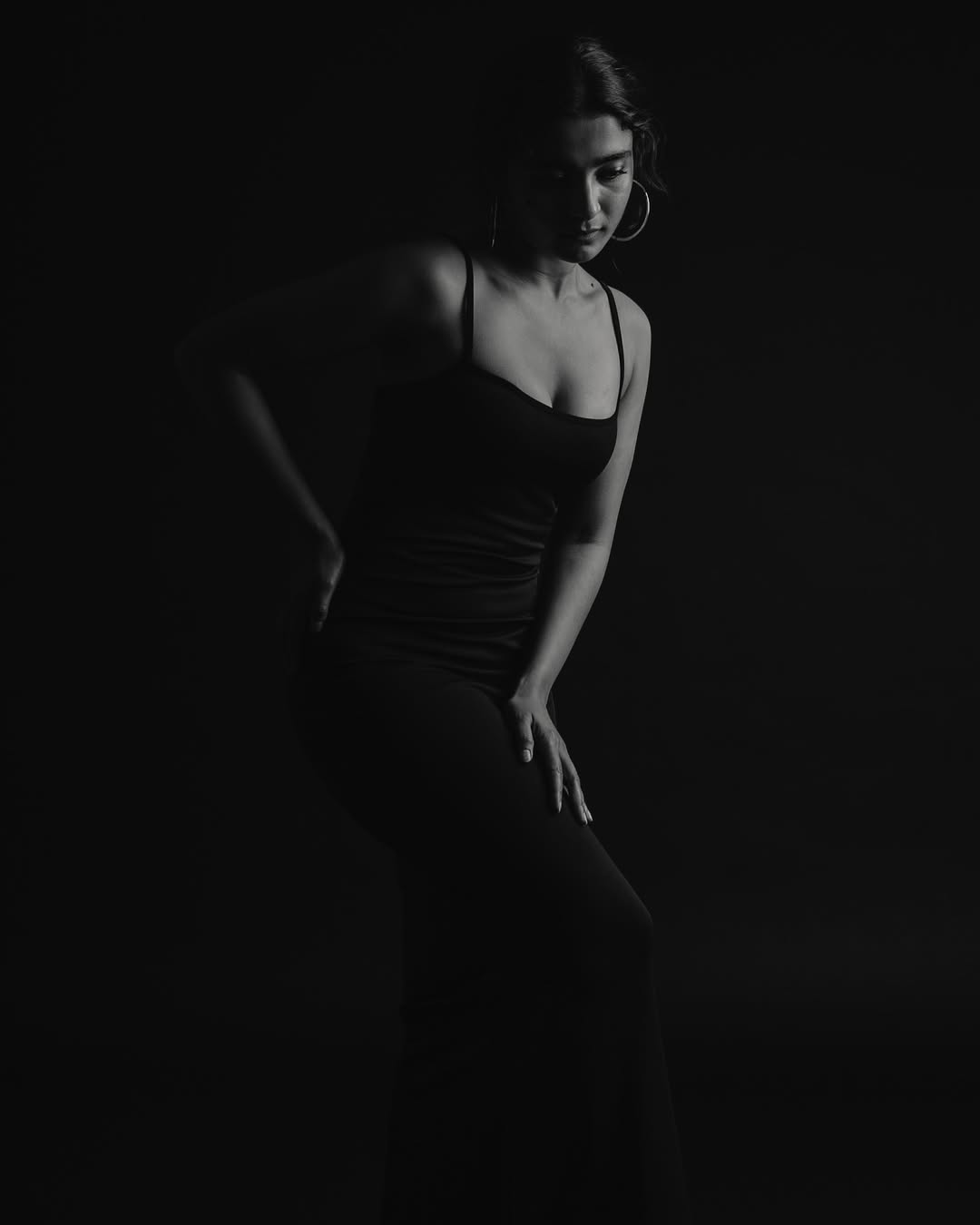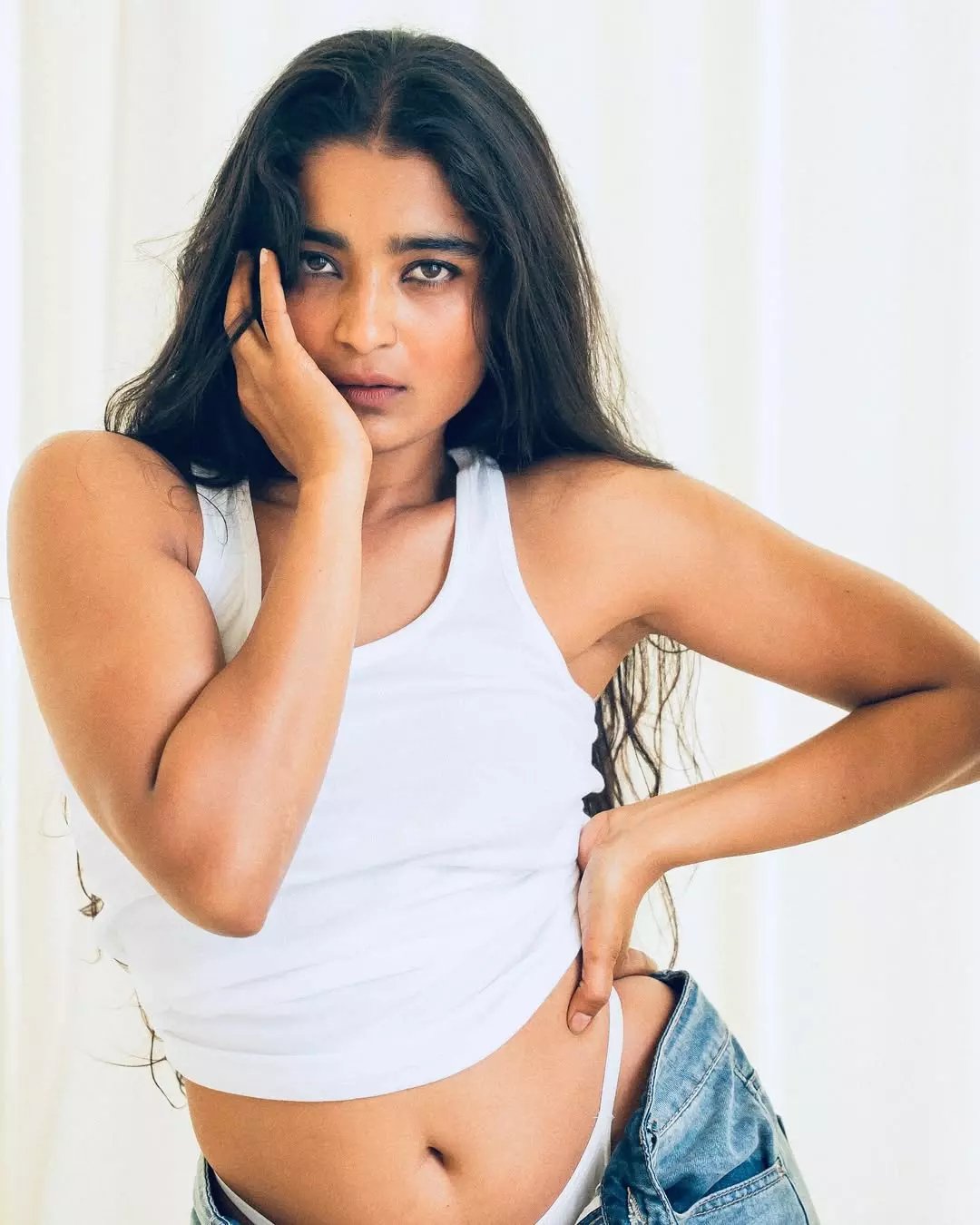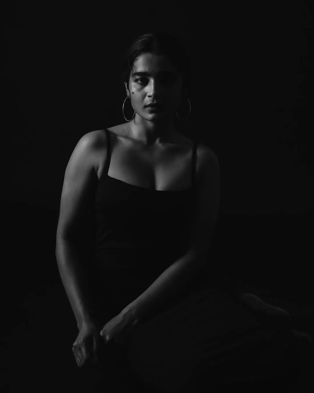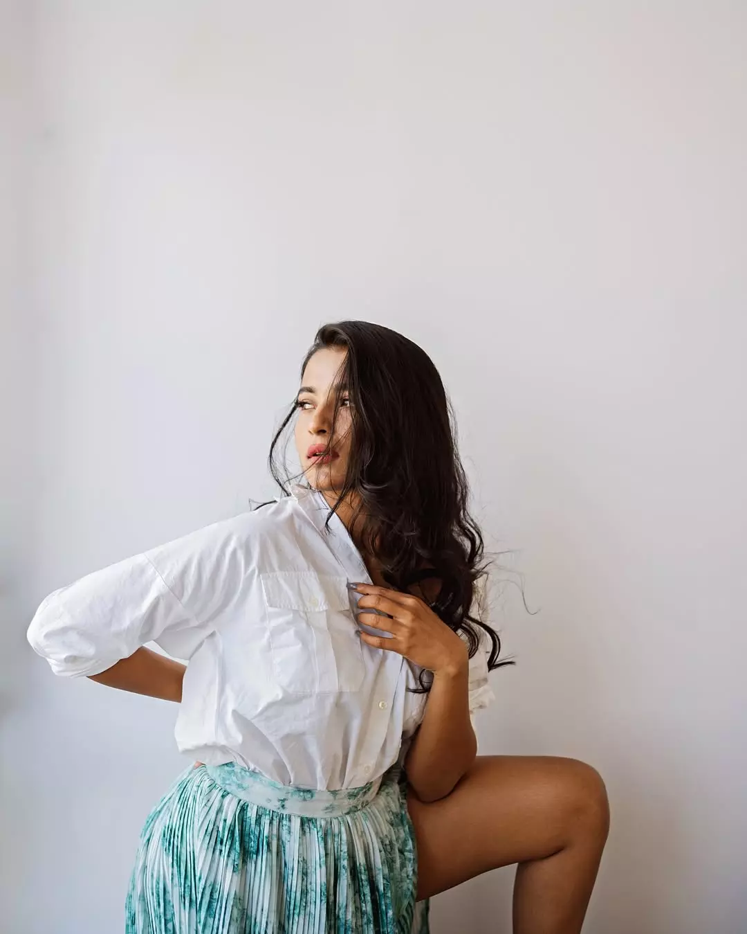 Chaithra J Achar turns up the heat in this powerful and striking portrait — Blazing! perfectly captures the essence of her look. Dressed in a chic white blazer layered over a bralette and shorts, she exudes confidence and raw energy. The moody lighting and intense gaze add depth to the frame, highlighting her fearless attitude and magnetic screen presence. With this photo, Chaithra proves that style isn’t just about fashion — it’s about owning your power, your poise, and your fire.