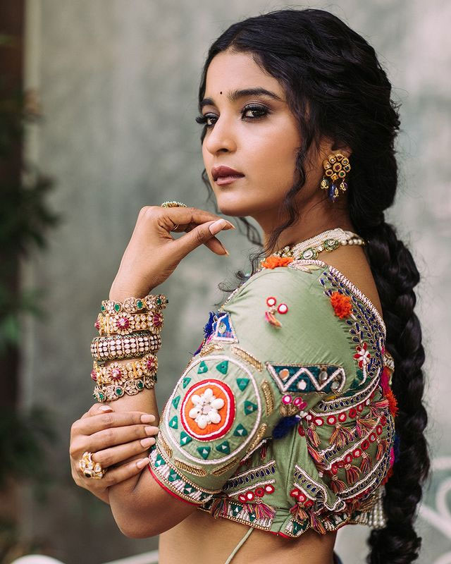 In the picture, she appears in a beautiful traditional dress styled with classic jewelry and a calm expression.